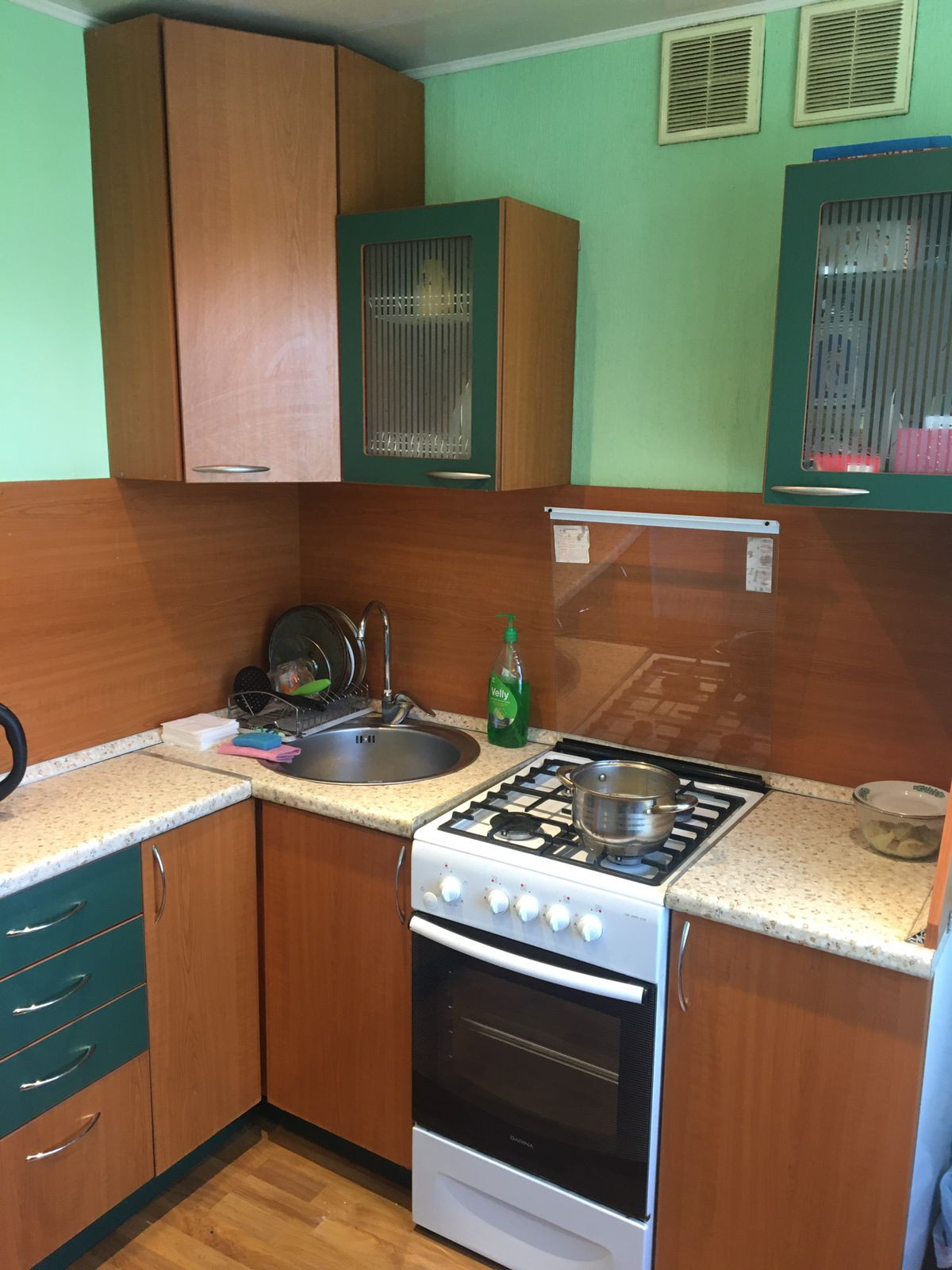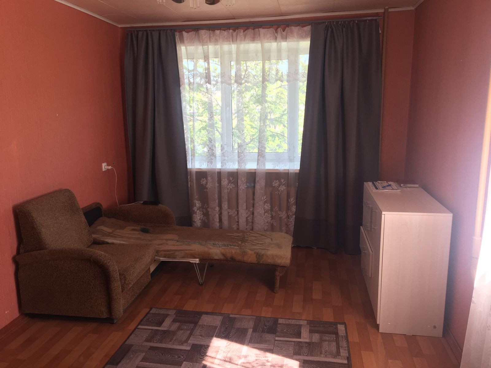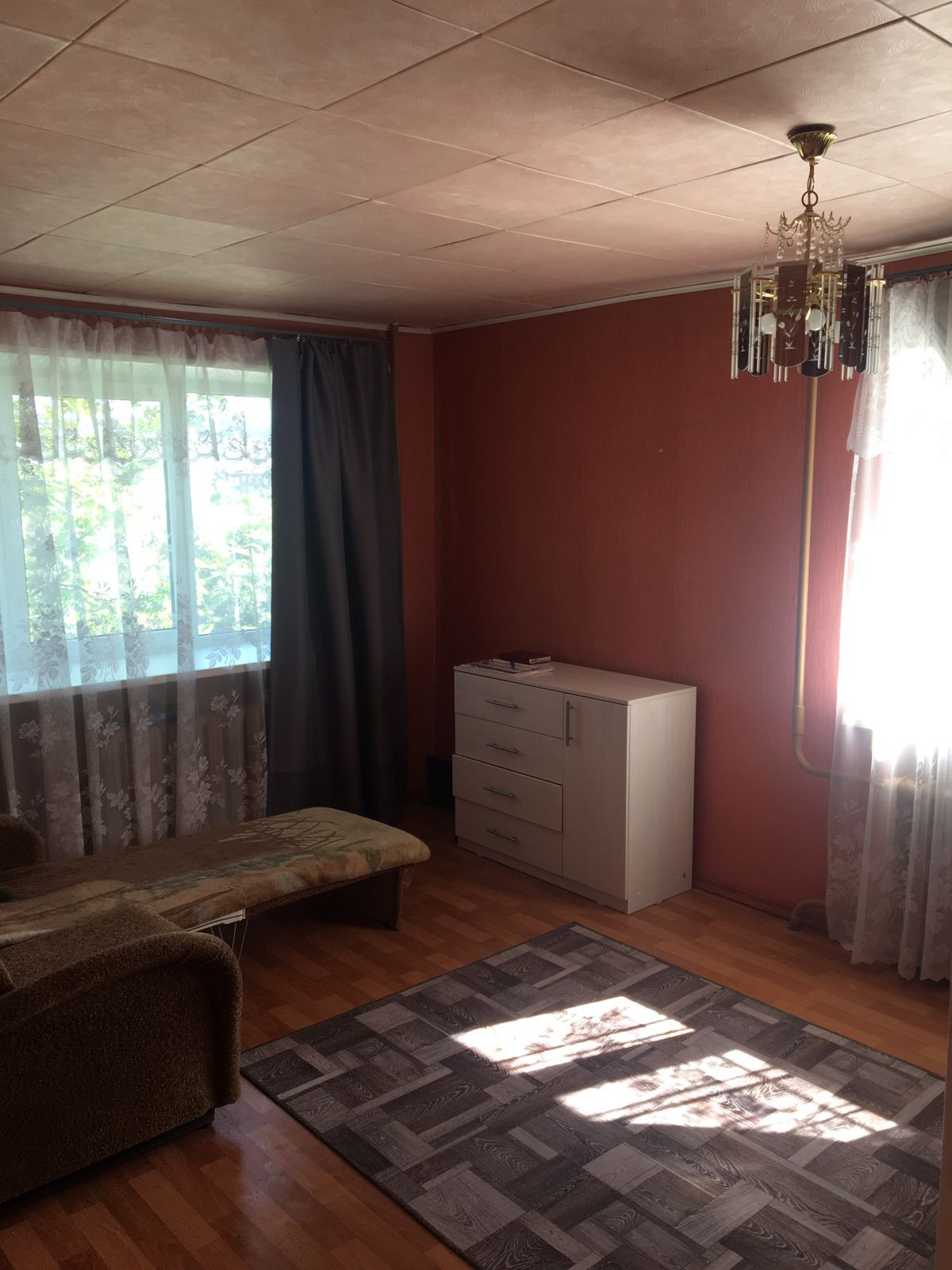 Квартира чистенькая, с простым косметическим ремонтом. Пол - линолеум, заменены окна, отводные трубы и стояки, счетчики на все. С/у совмещенный, панели, ванна - чугун. Встроенная кухня, новая входная дверь. Два окна в комнате, светлая, с приятным видом из окон, чистый отремонтированный подъезд.
