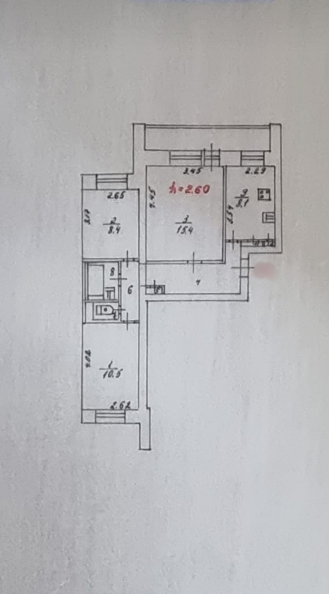 Высота потолков 2.6 м