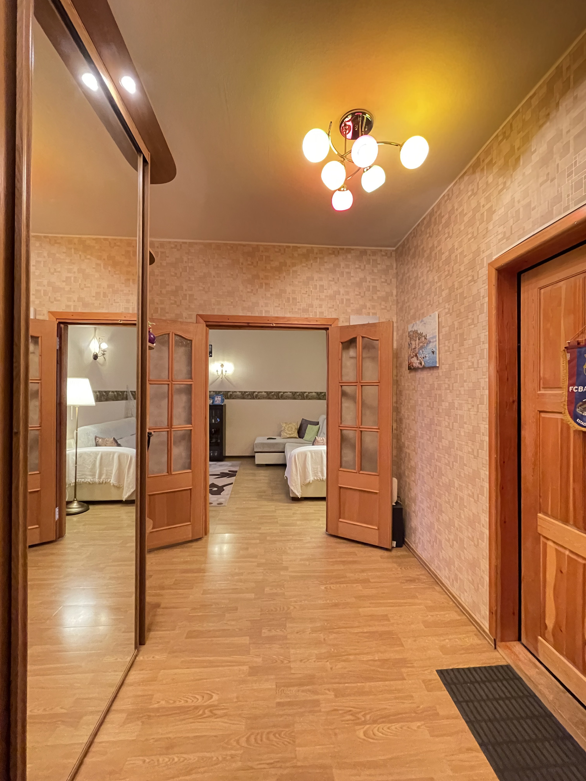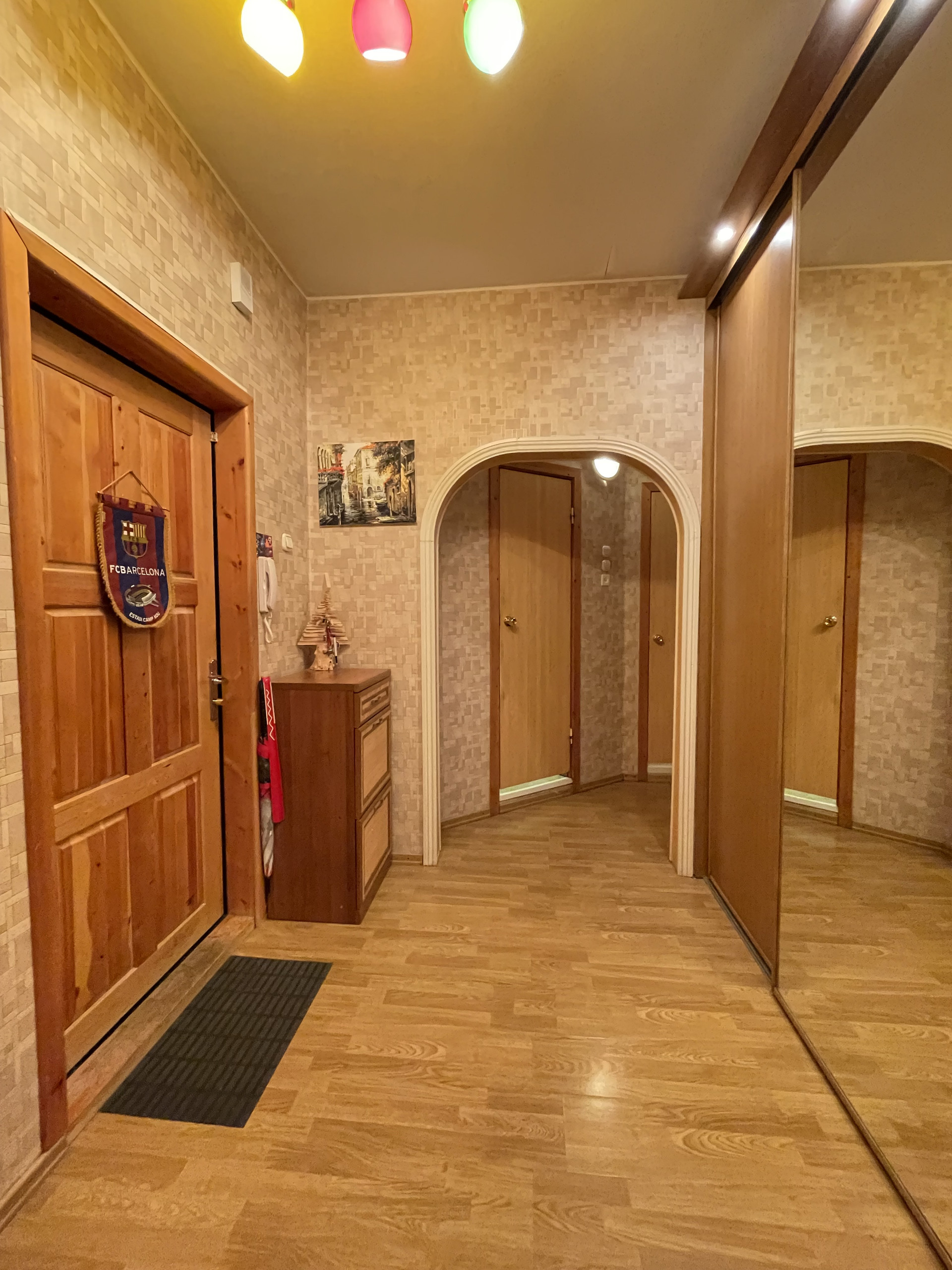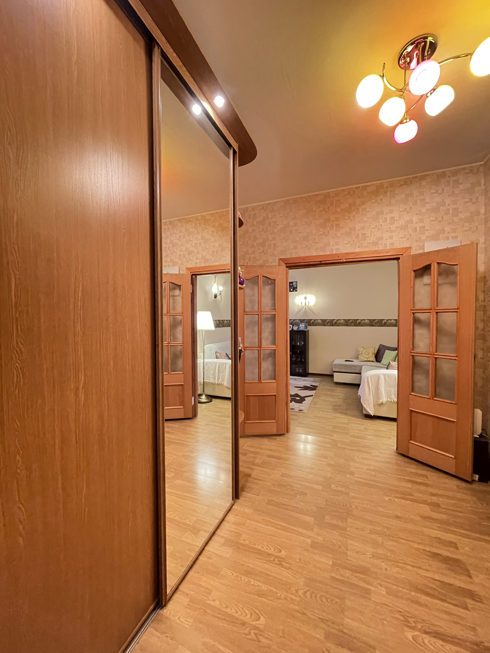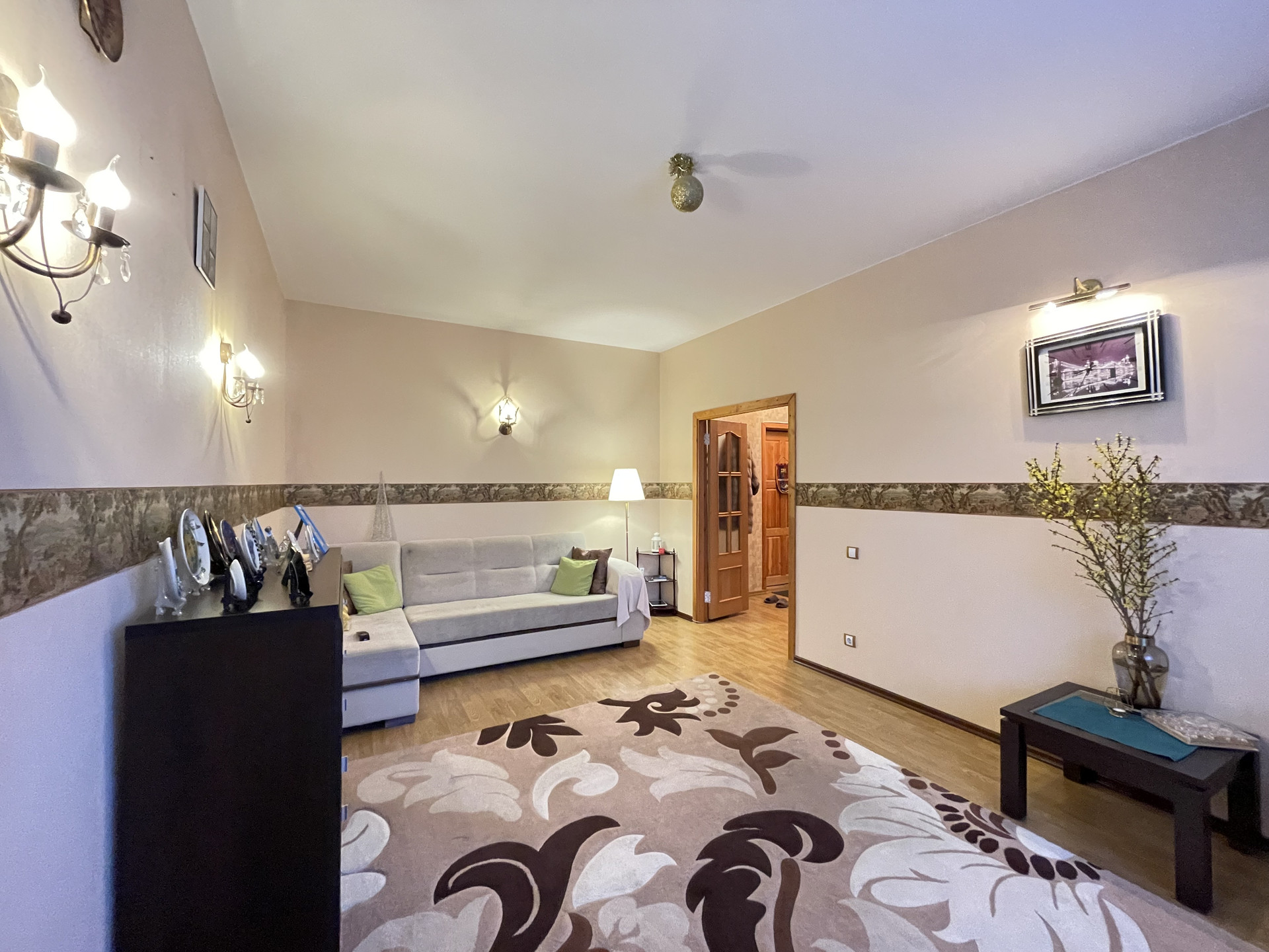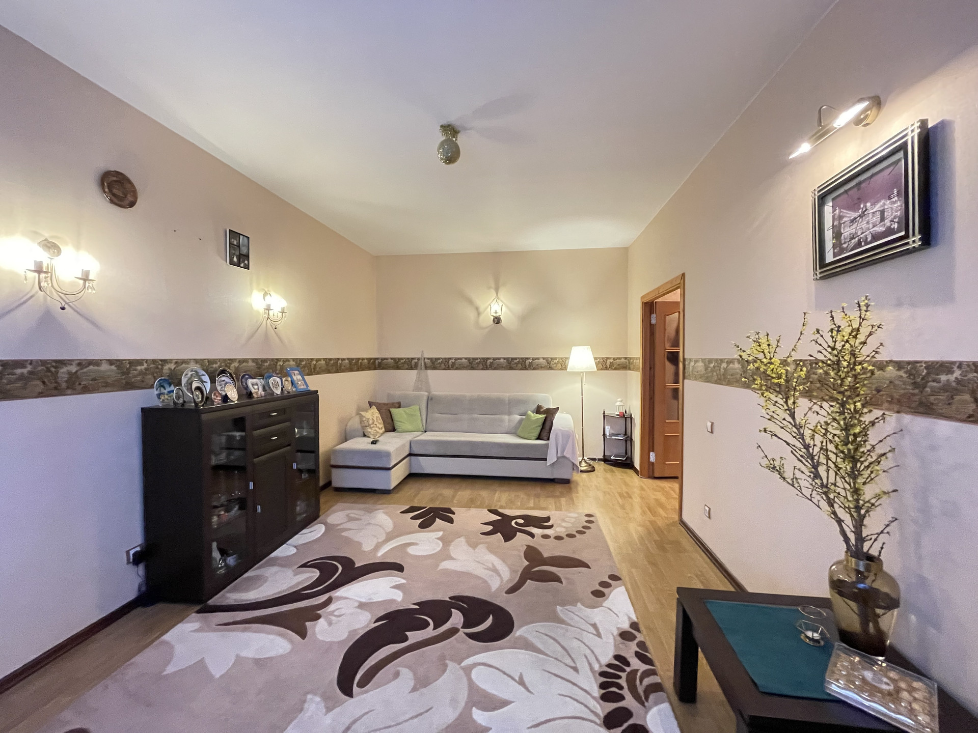 Двухкомнатная квартира в доме 93 серии. Общая площадь 55 кв.м., комнаты 13+20, кухня 9 кв.м.+балкон. В квартире сделан хороший косметический ремонт, ровняли стены, на полу во всей квартире - единый ламинат, кухня - пол с подогревом, кафель. Во всей квартире установлены стеклопакеты, частично заменены межкомнатные двери, с/у раздельный, кафель; выведены радиаторы отопления. В коридоре и в спальне встроенные шкафы-купе. Окна выходят на солнечную сторону, всегда есть свободные парковочные места. В квартире остается мебель и техника. В шаговой доступности остановки общественного транспорта, школа, д.сад, магазины, легкоатлетический манеж, Долина уюта. Документы готовы. Цена 5 млн 800 тр, рассмотрим любую форму оплаты.