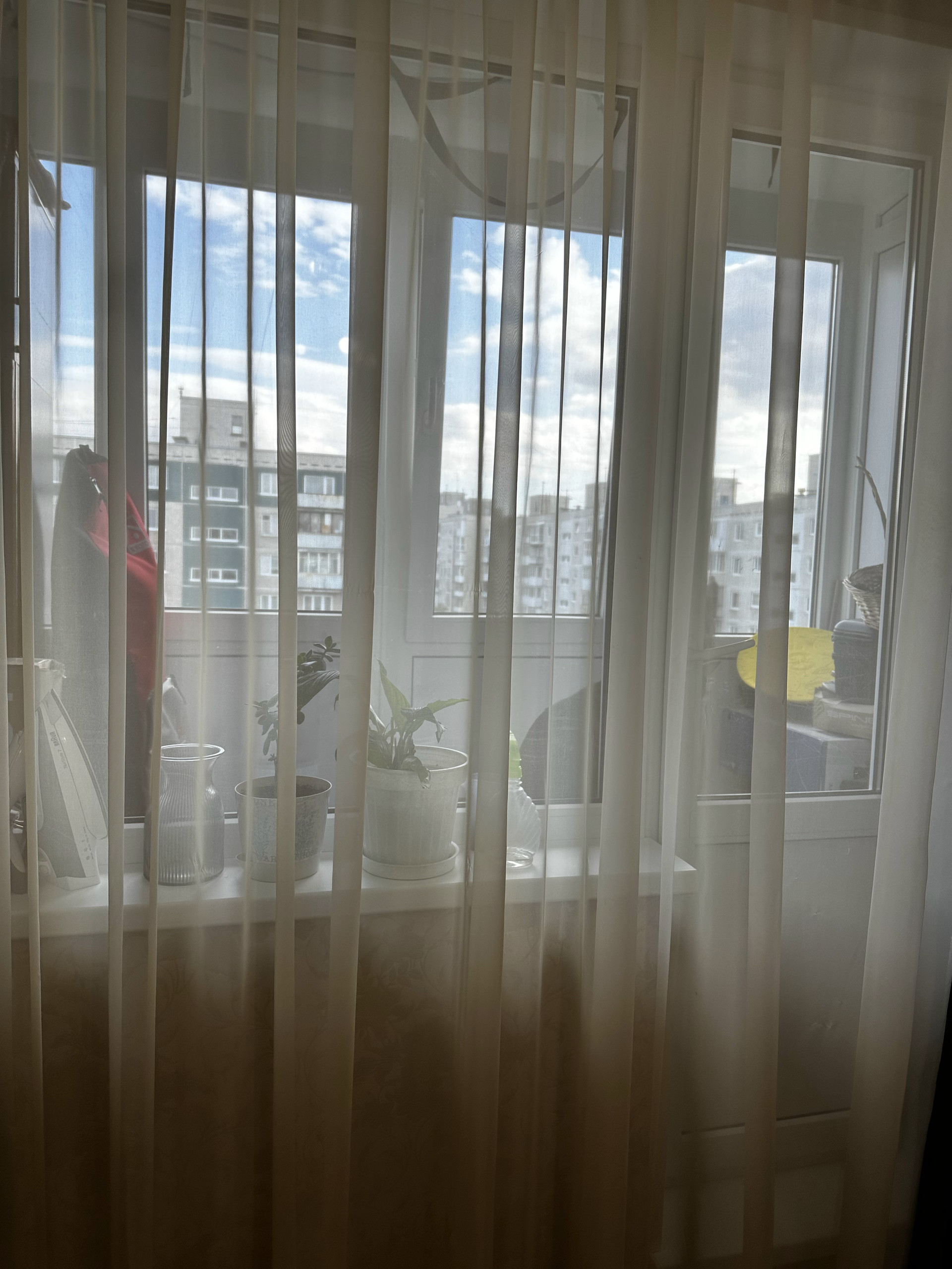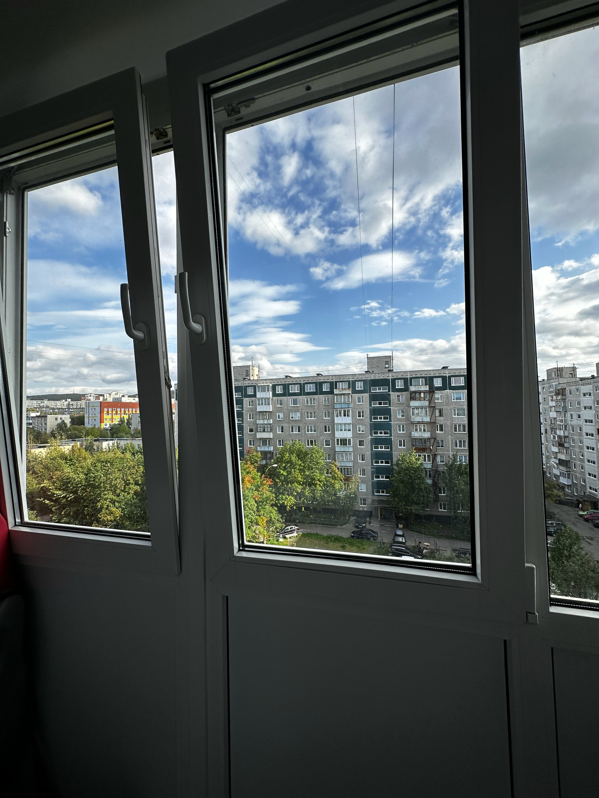 Застекленный балкон, окна выходят в соседний двор.