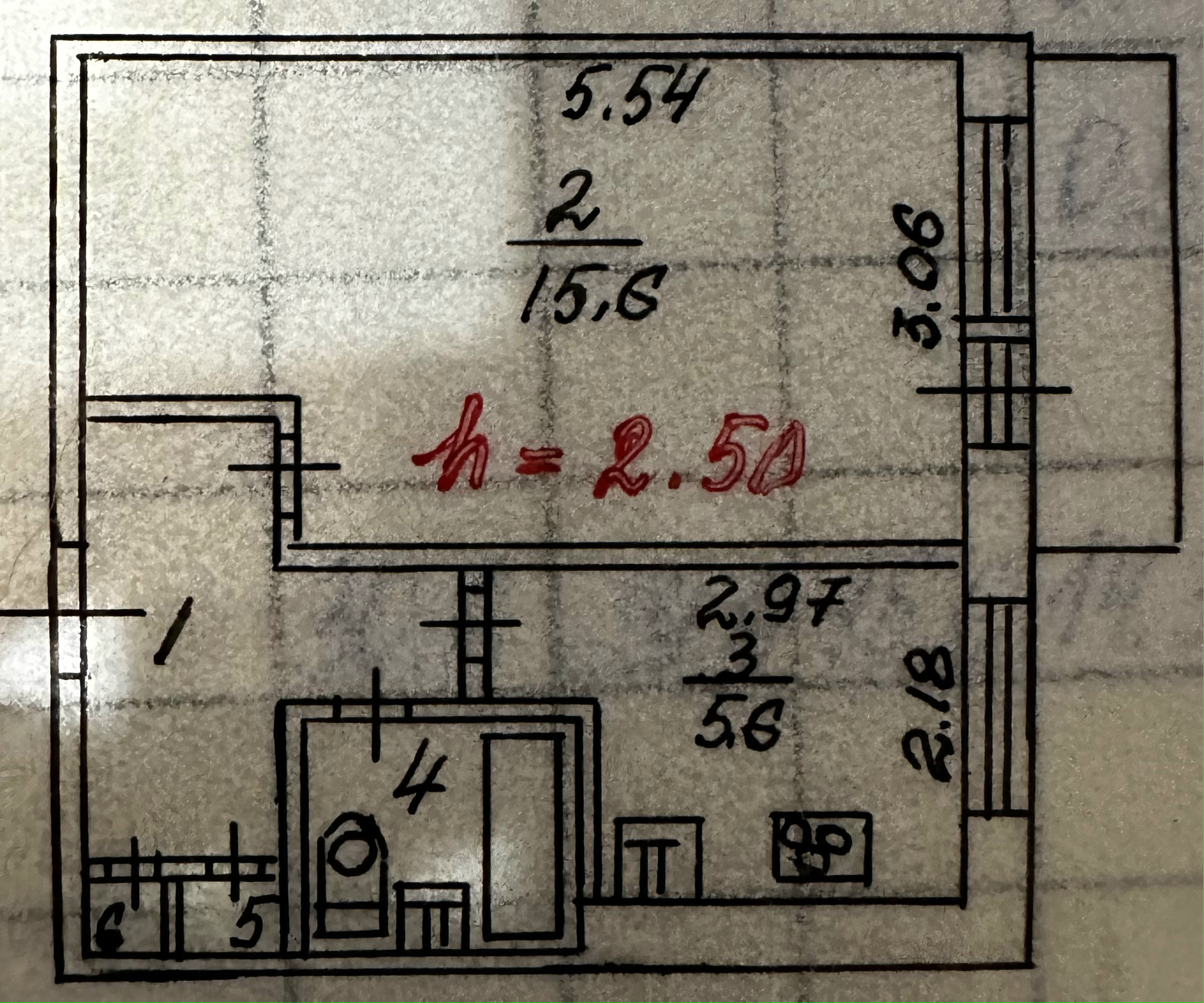 Высота потолков 2.5 м