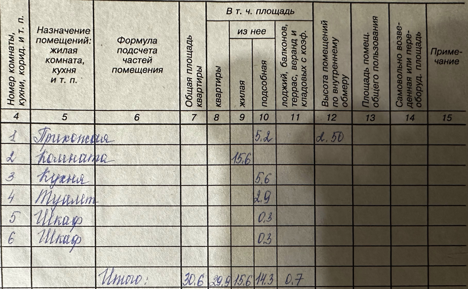 Общая площадь 30.6 м2