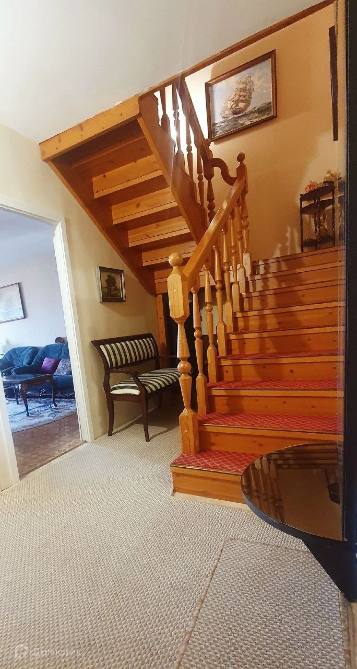 На второй этаж ведет безопасная лестница с перилами и удобными ступенями, что позволяет легко по ней спускаться и подниматься, как взрослым, так и детям.