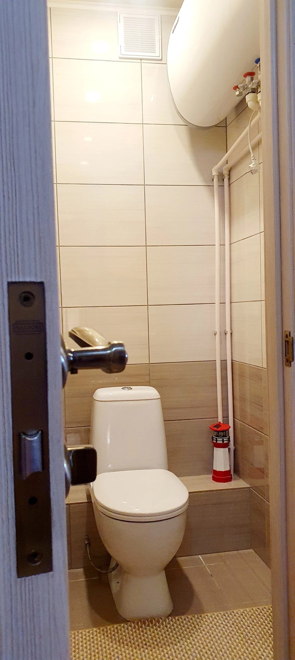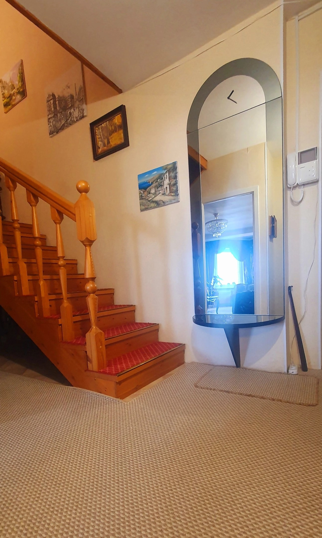 На первом этаже: прихожая, совмещенный санузел, кухня с электроплитой, большой зал с эркером, малая комната с застекленным балконом до пола.