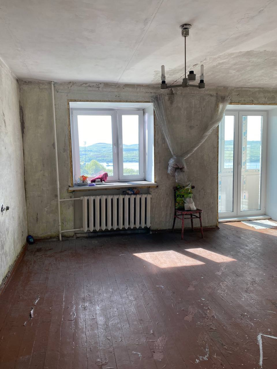 Балкон застеклен.