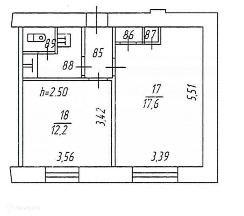 Жилая площадь 17 м2