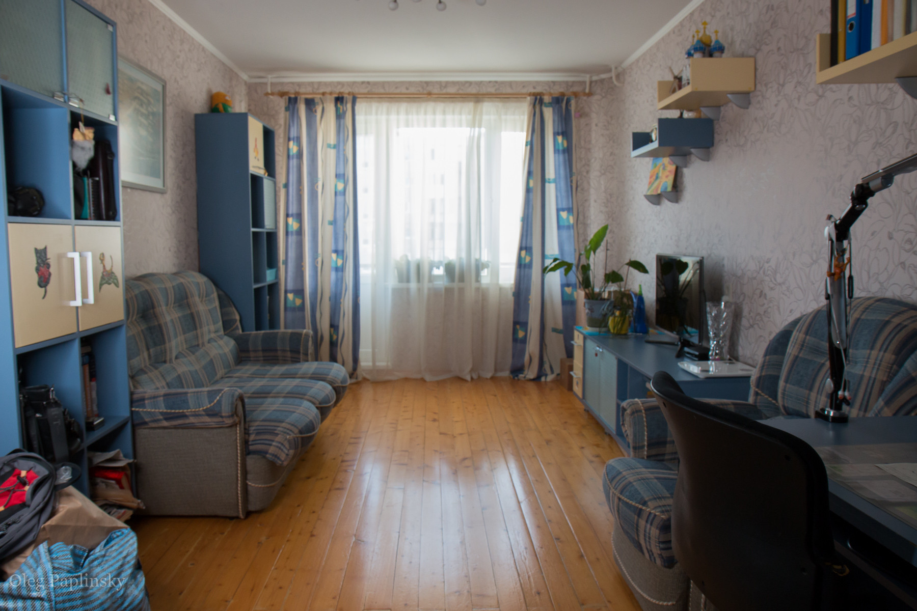 Окна кухни и двух комнат выходят на запад, окна комнаты с лоджией на восток.