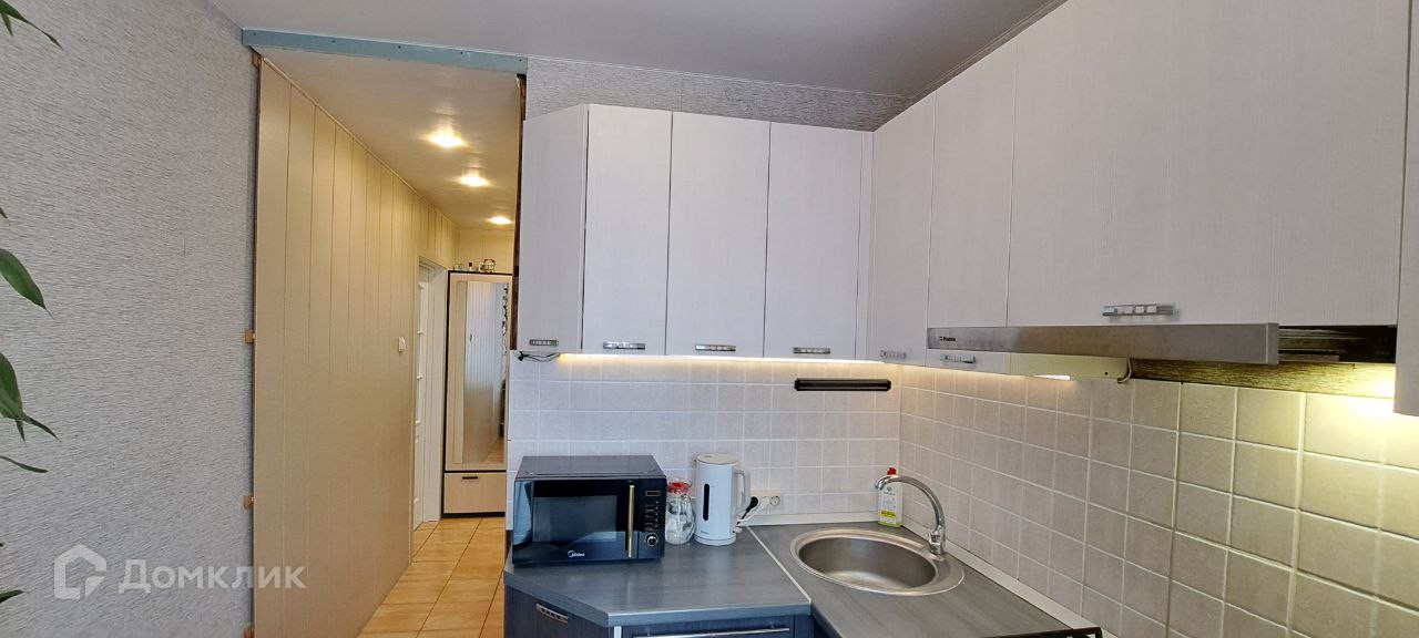Новым собственникам остается кухонный гарнитур со встроенной техникой.