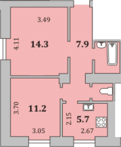 - отлично подходит для перепланировки под евродвушку