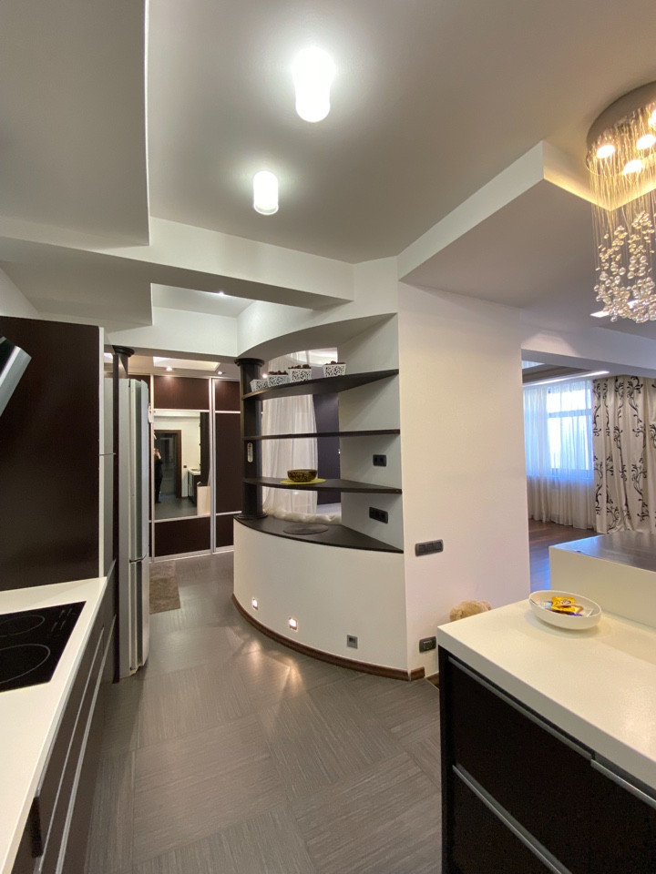 Шикарный ремонт с использованием высокого качества материалов, мебели и техники.