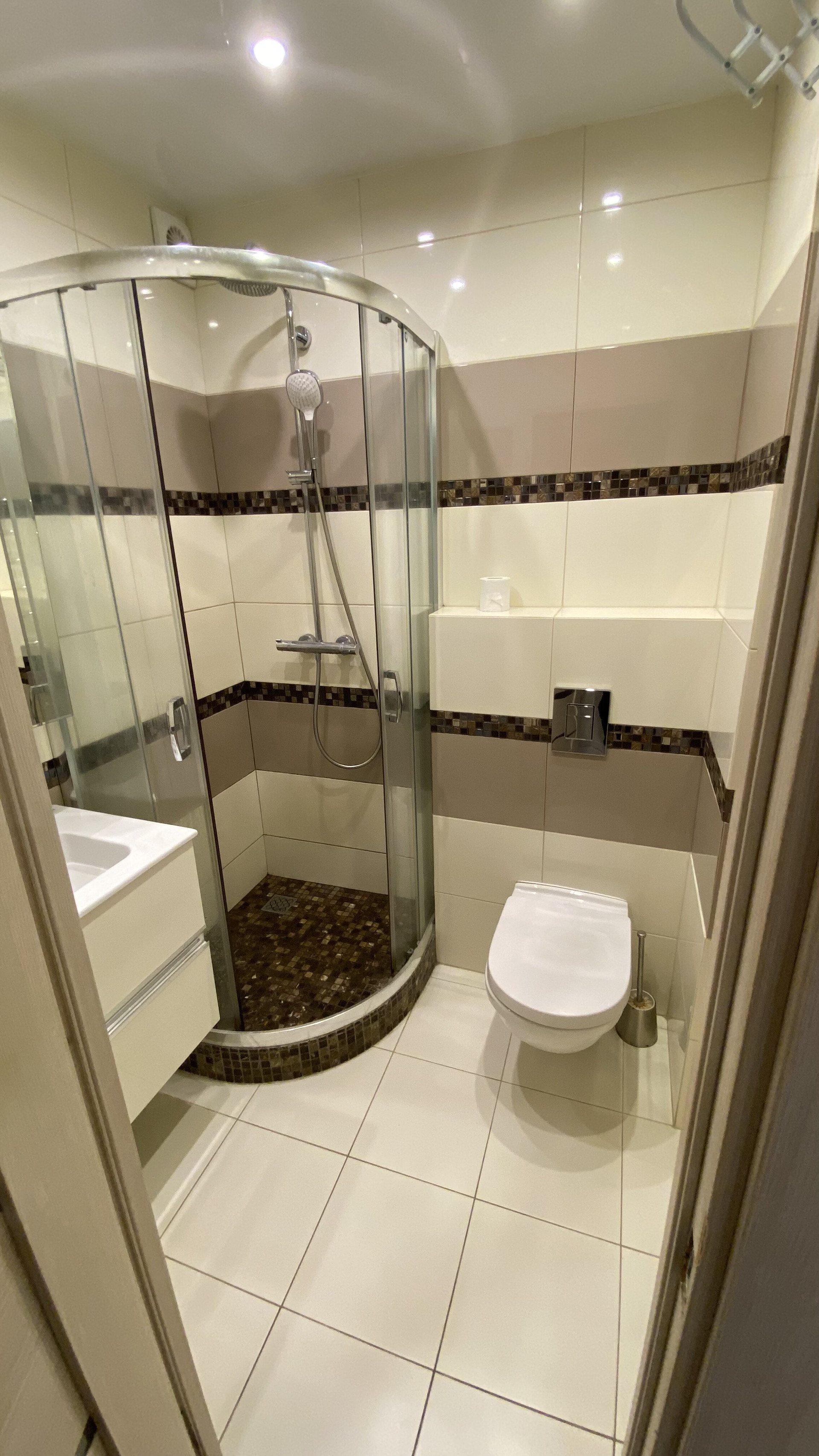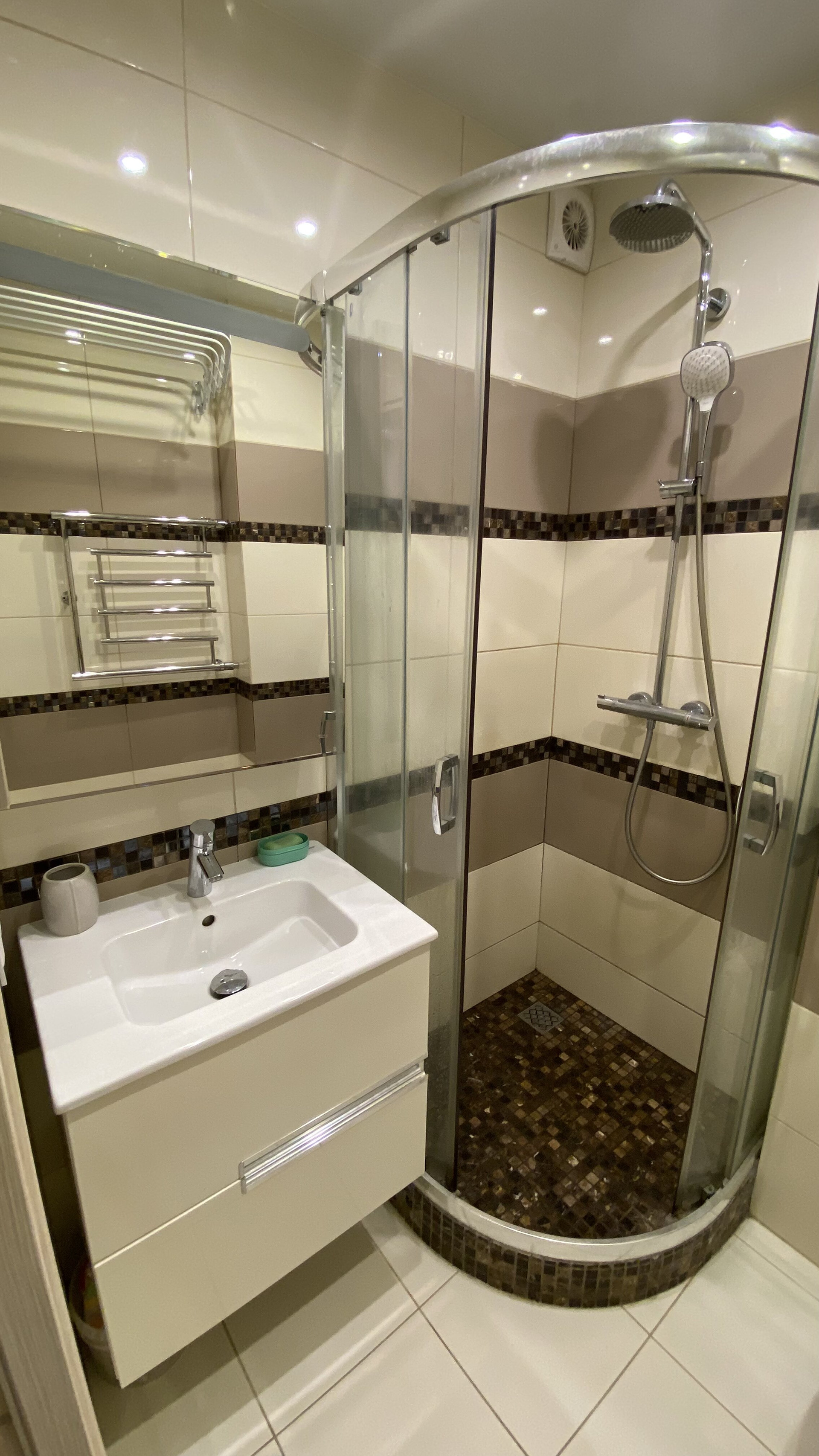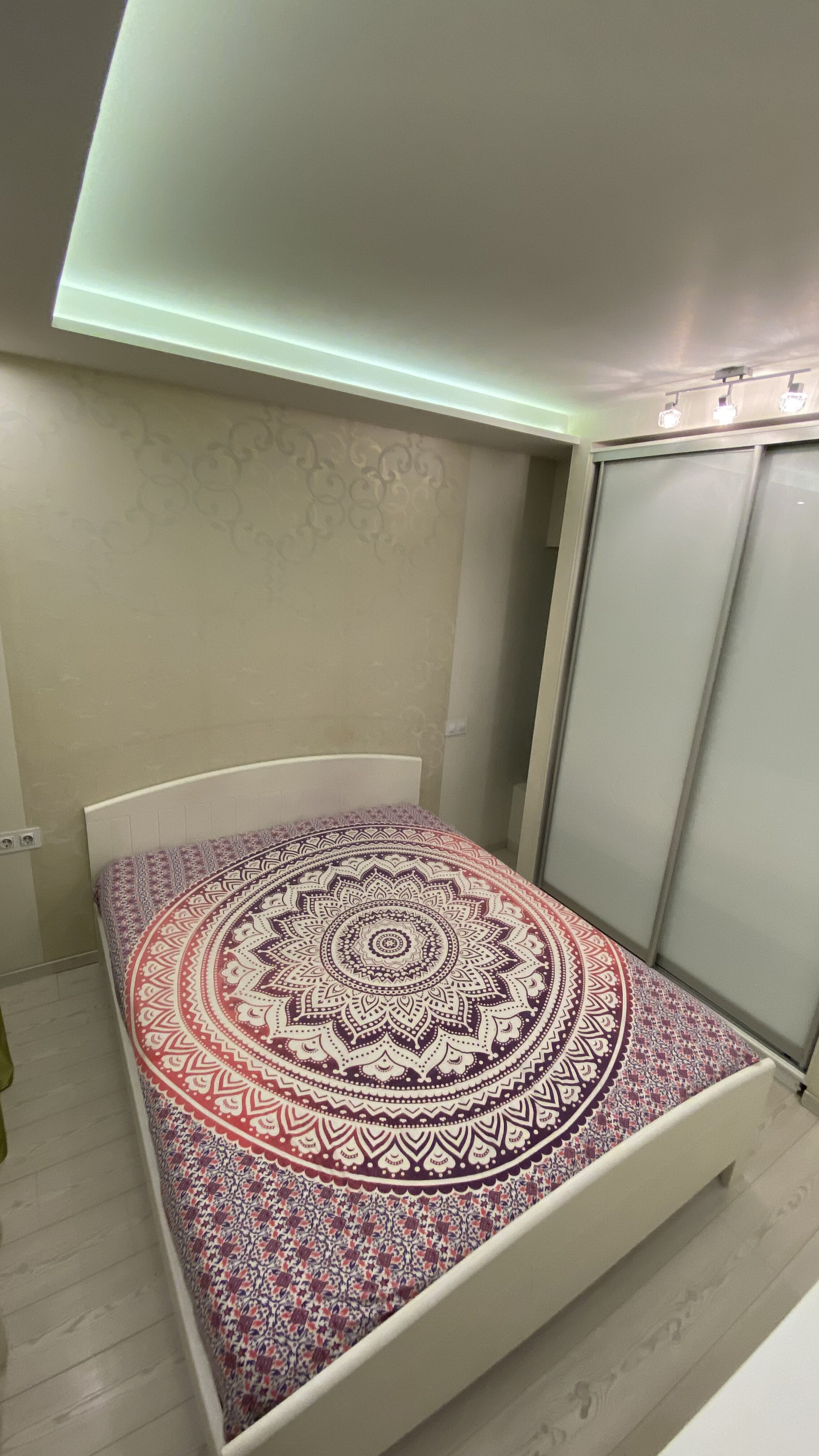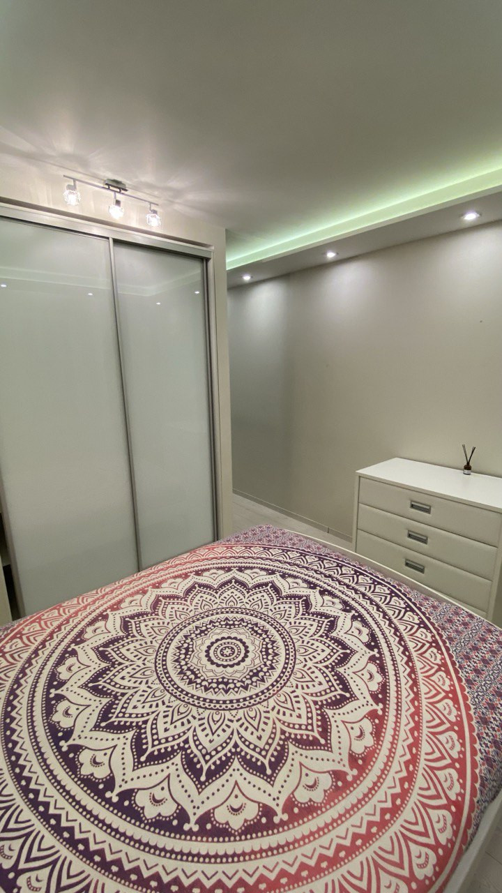 В квартире сделано дизайнерское зонирование, на две зоны отдыха. Полностью укомплектована: Холодильник, электрическая варочная панель, духовка, большой шкаф и душевая кабинка с термостатом, подвесной унитаз, очень много источников мягкого света.