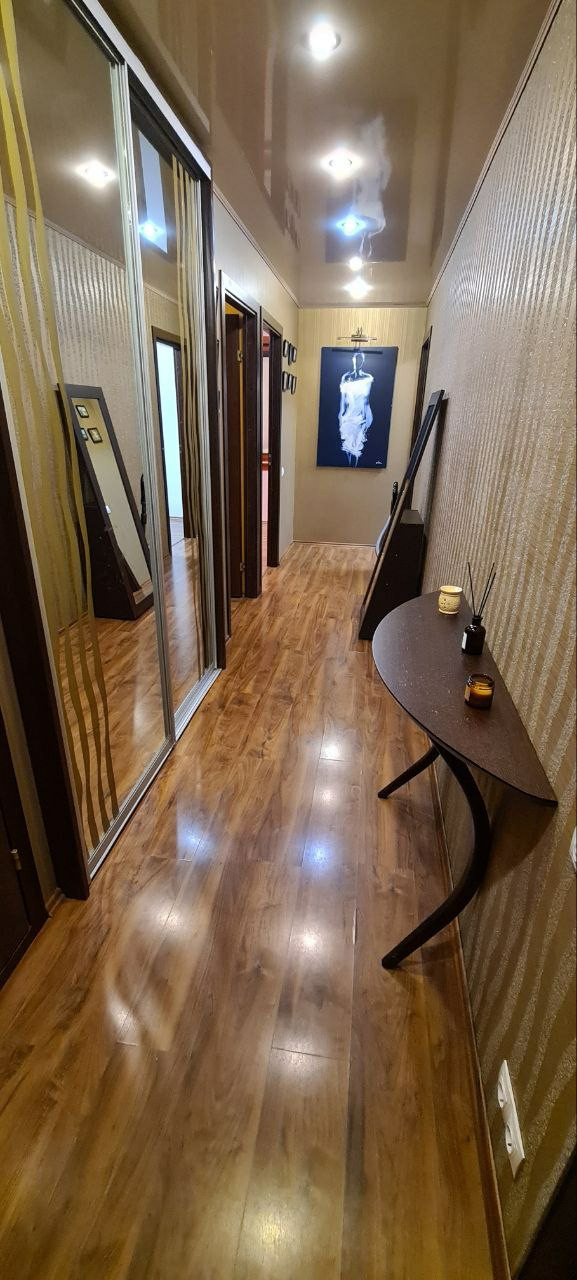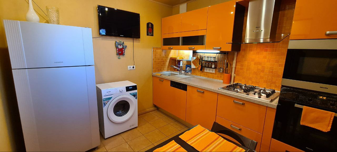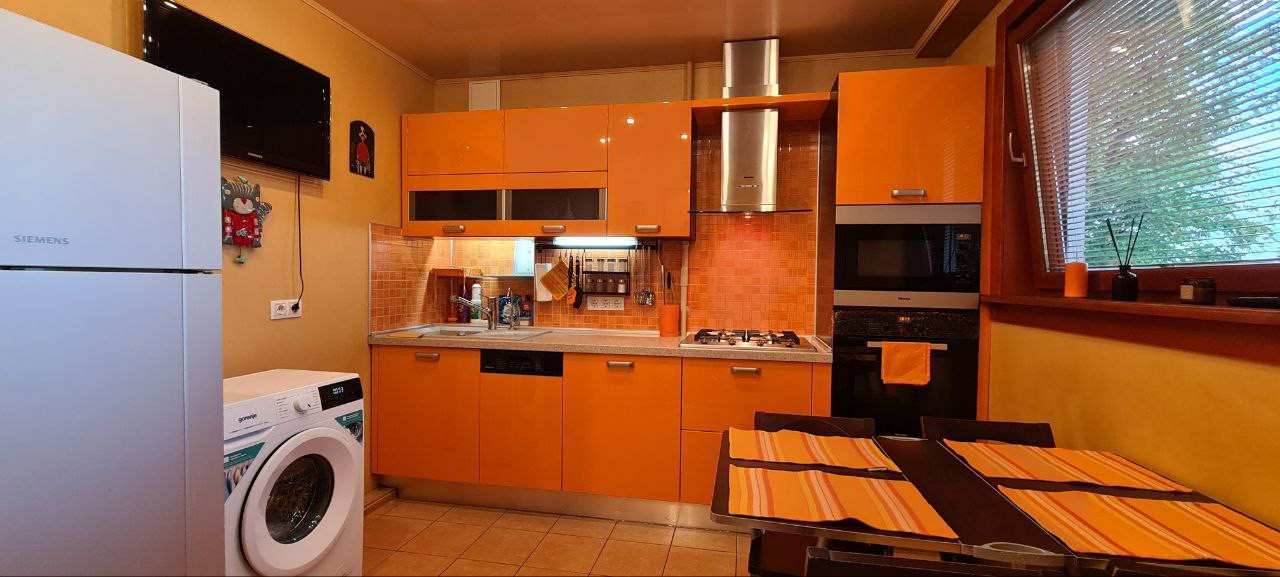 Квартира расположена на 2 этаже в тихом районе. В тамбуре 1 соседи. Тамбур отремонтирован, есть тумба для обуви, металлическая входная дверь. В квартире выполнен высококачественный ремонт, деревянные окна Eurotivi, межкомнатные двери из массива сосны, заменена вся электропроводка, система водоснабжения и водоотведения, сантехническое оборудование hansgrohe. В квартире просторная кухня, оснащена всем необходимым (посуда, столовые приборы). Кухонная техника, включая посудомойку- Miele. Подогрев пола. Сан узел раздельный, в ванной установлен бойлер 70 л., подогрев пола. Просторный коридор со встроенным шкафом купе. В гостиной установлен раскладной диван, получается 2 полноценных спальных места, ящики для хранения. Спальня изолирована, имеет системы хранения, шторы блэкаут. Детская отдельно, установлена двухярусная кровать, шторы блэкаут.