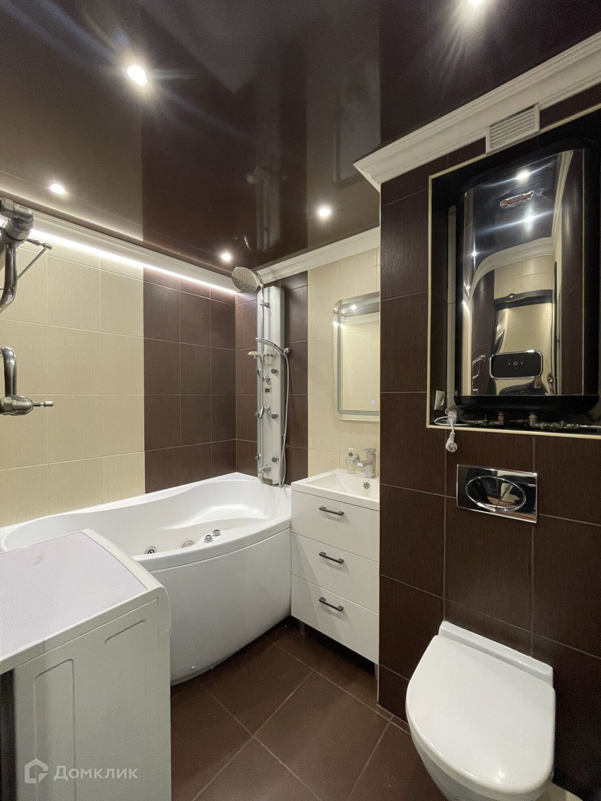 В комнатах на полу ламинат, в коридоре и на кухне плитка. Санузел совмещённый, есть водонагреватель.
