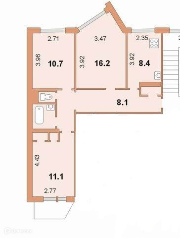 Общая площадь 63 м2