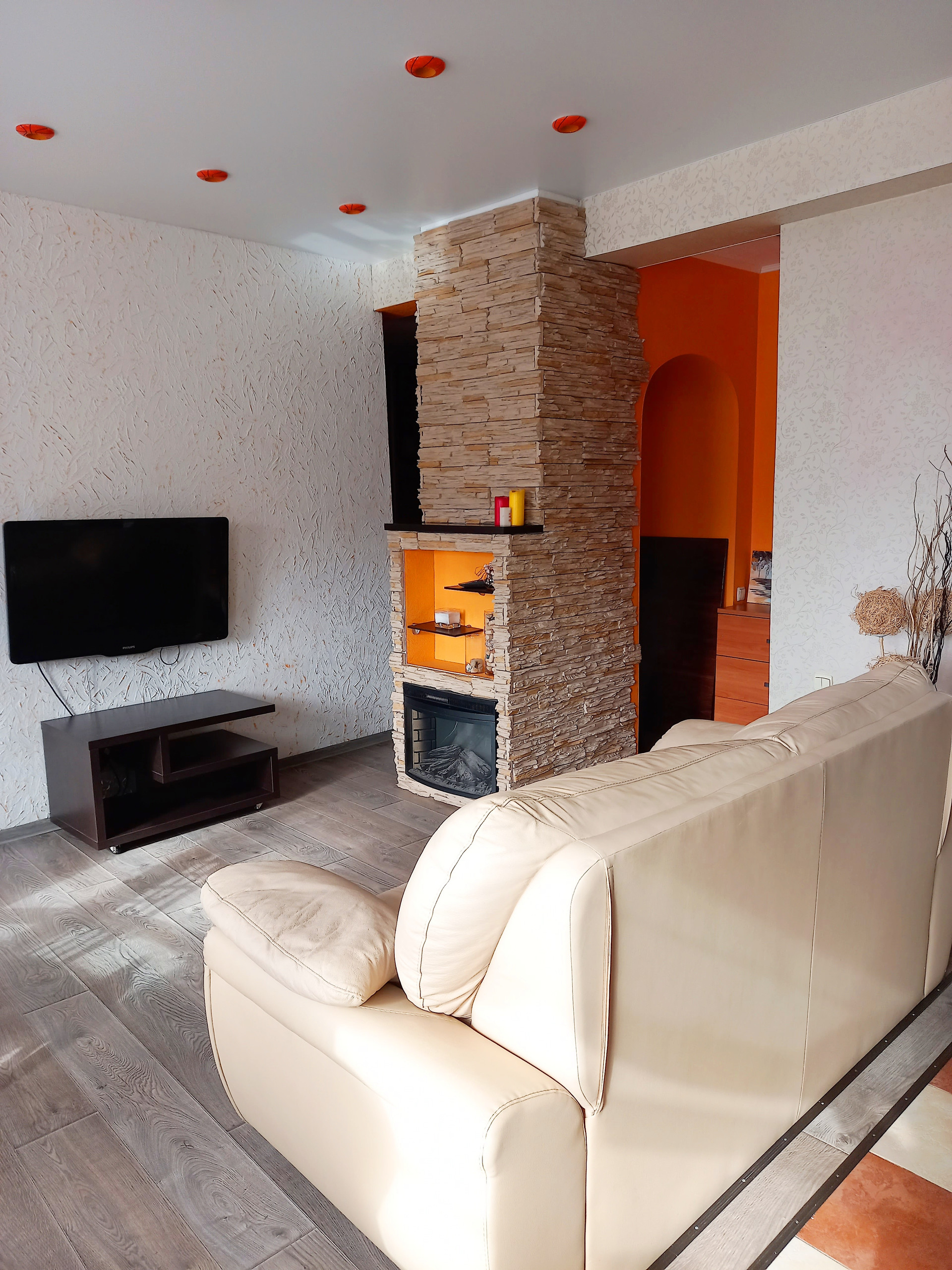 Просторная гостиная 30м2 укомплектованная вместительной встроенной кухней: