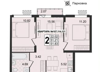 Продам 2-ком. квартиру, 51.8 м2