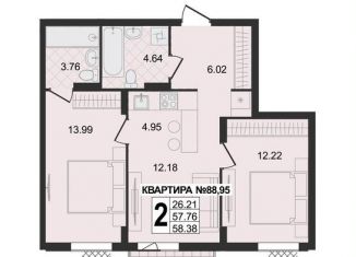 Двухкомнатная квартира на продажу, 58.4 м2
