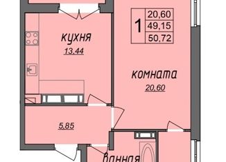 Продам 1-ком. квартиру, 50.72 м2, Колхозная улица, 24