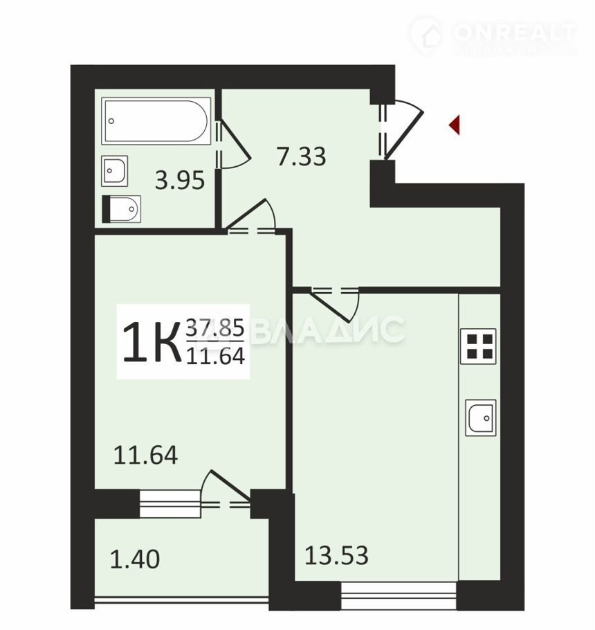 Общая площадь 37.9 м2