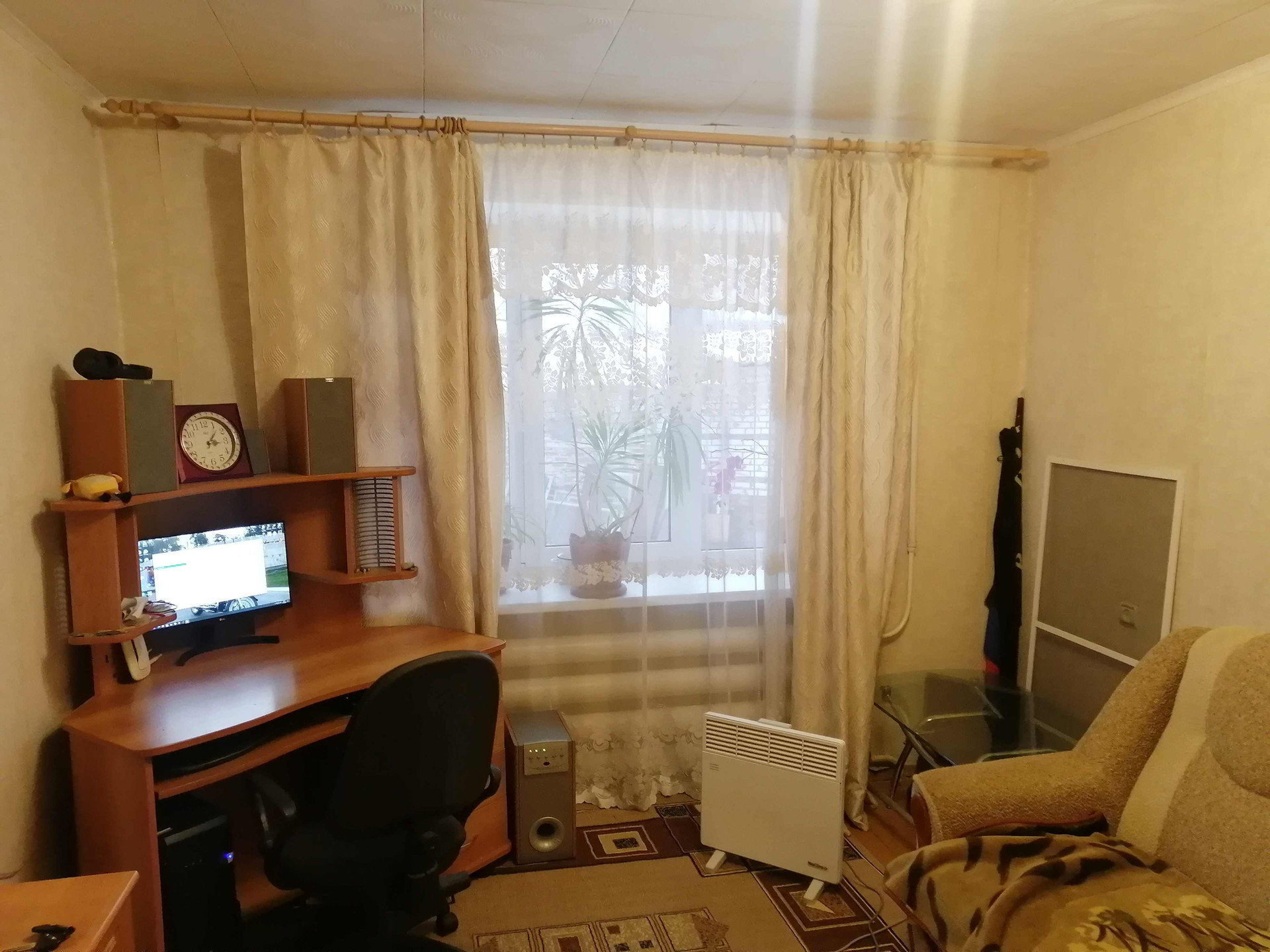 Хорошее, жилое состояние. Косметический ремонт, прекрасное окно ПВХ, крепкий пол(не скрипит) . По договорённости частично будем оставлять мебель. Туалет на 4 комн, душ на 8 комнат. (очень приличные). Живут не все соседи(в перспективе выкуп). Подходит под ипотеку и материнский капитал.