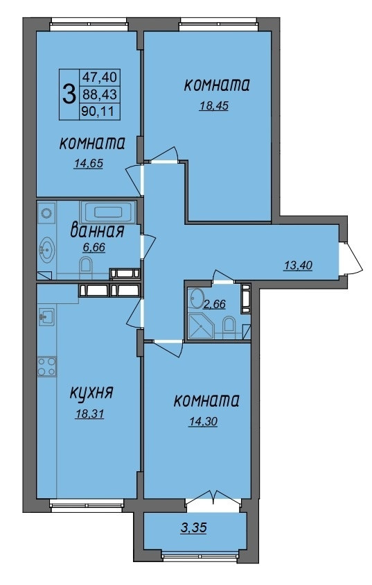 Общая площадь 90.11 м2