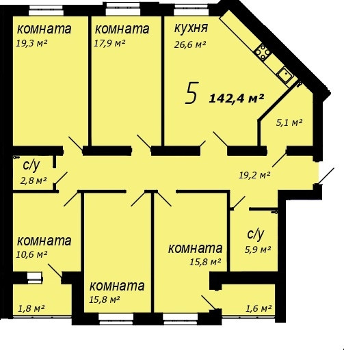 Общая площадь 142.4 м2