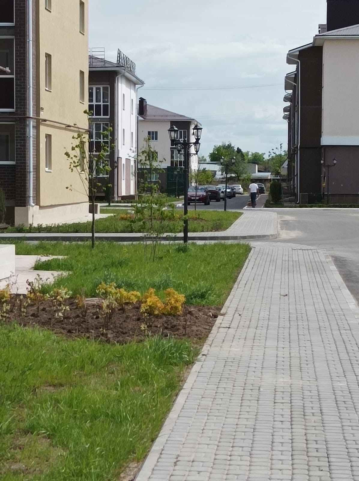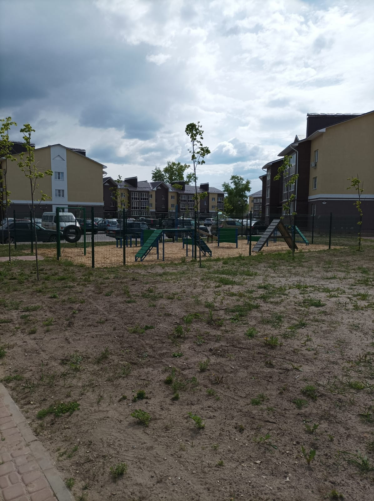 На территории комплекса в каждом дворе детские игровые площадки, аккуратные пешие дорожки, зелёные насаждения, парковочные места.
