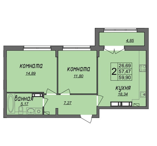 Общая площадь 59.9 м2