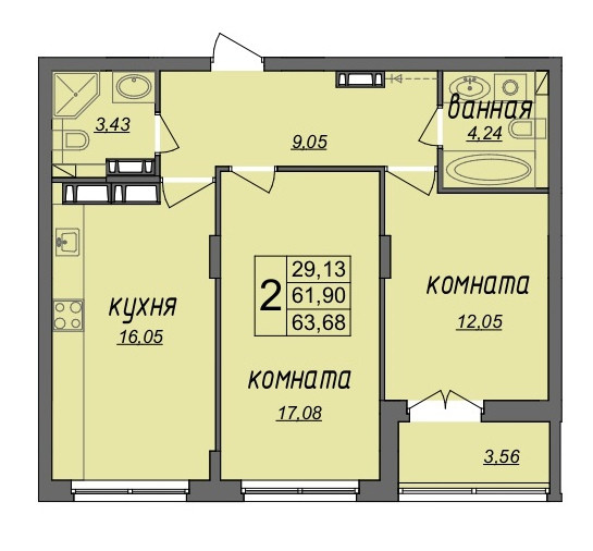 Общая площадь 63.68 м2
