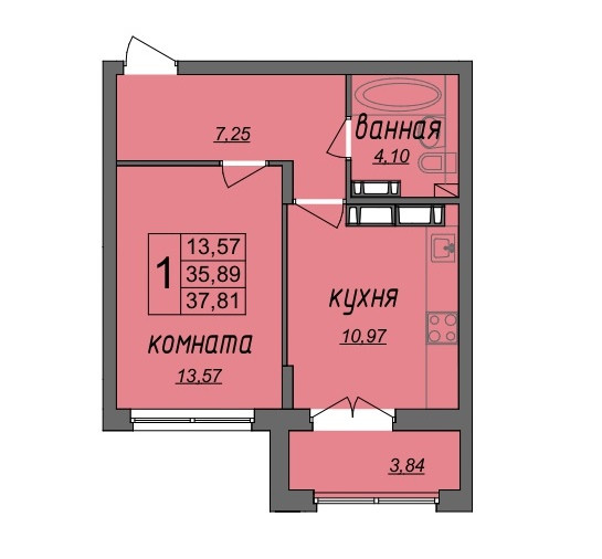 Общая площадь 35.89 м2