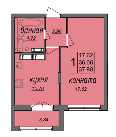 Общая площадь 37.98 м2