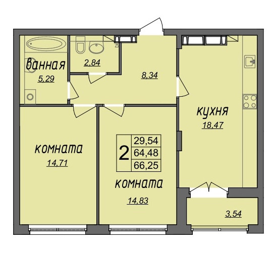 Общая площадь 66.25 м2