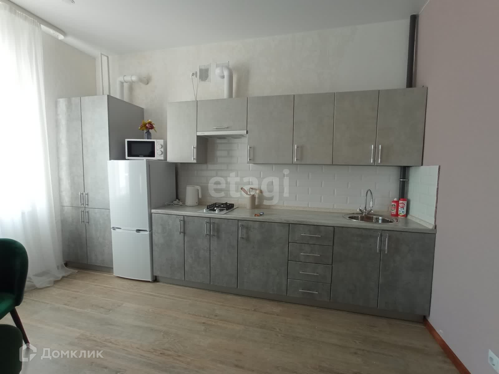 Квартира обустроена для комфортного проживания. Из техники имеется: стиральная машина, холодильник, микроволновая печь, телевизор, пылесос, утюг, электрический чайник. Из мебели имеется комфортная двуспальная кровать, вместительный шкаф, удобный диван, комод, журнальный столик, в обеденной зоне мягкие и удобные стулья.