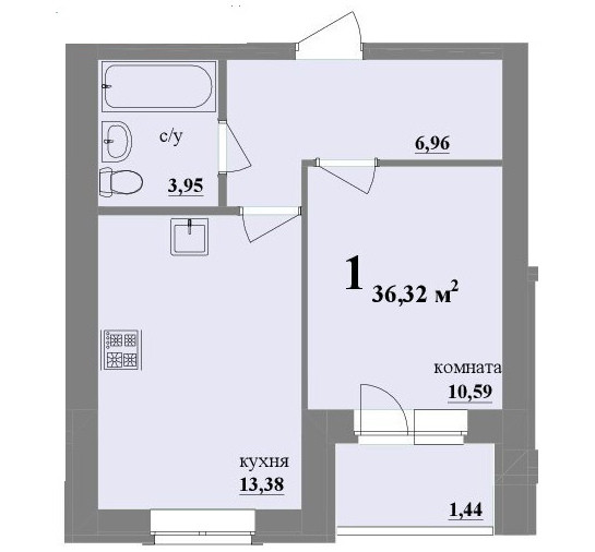 Общая площадь 36.36 м2