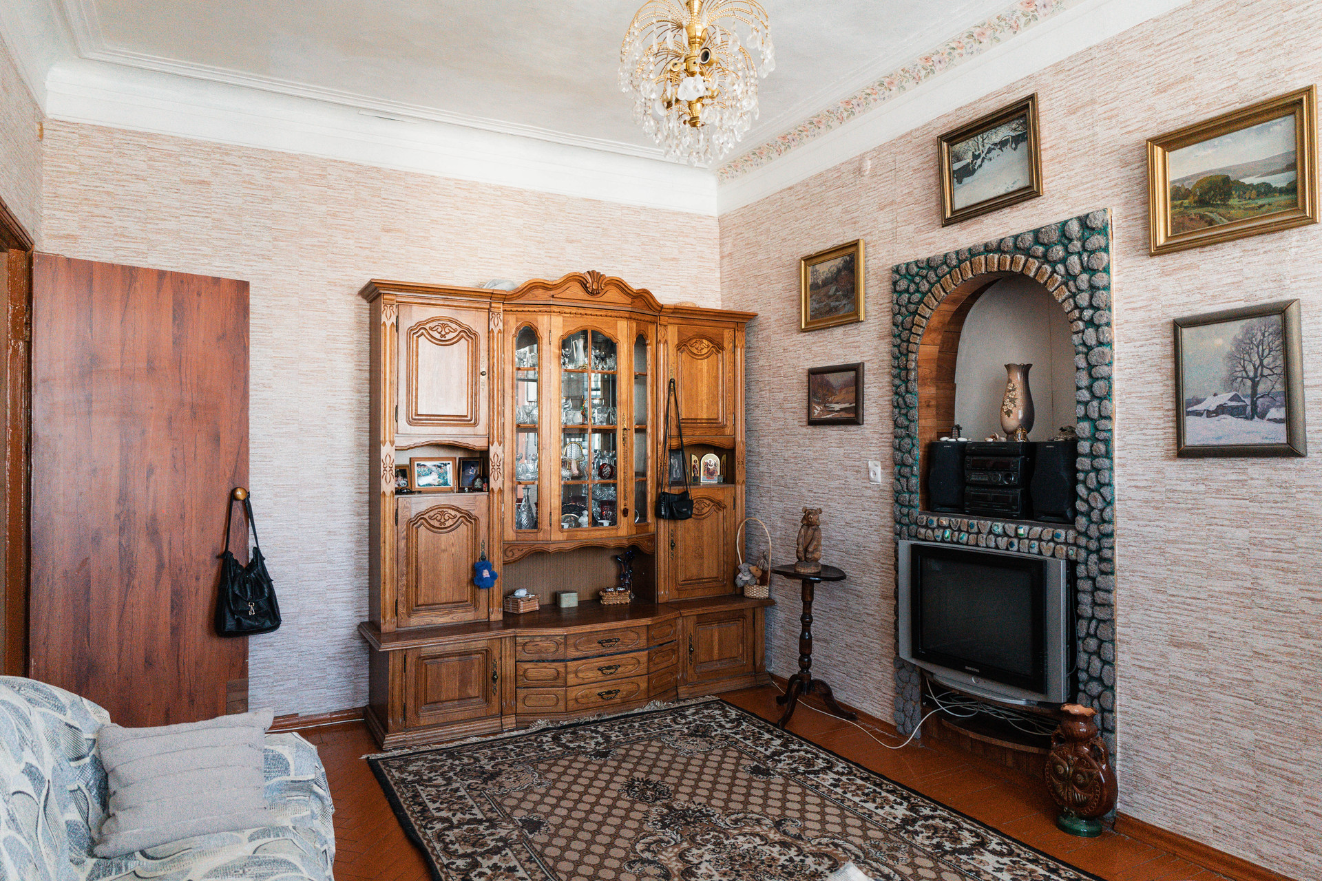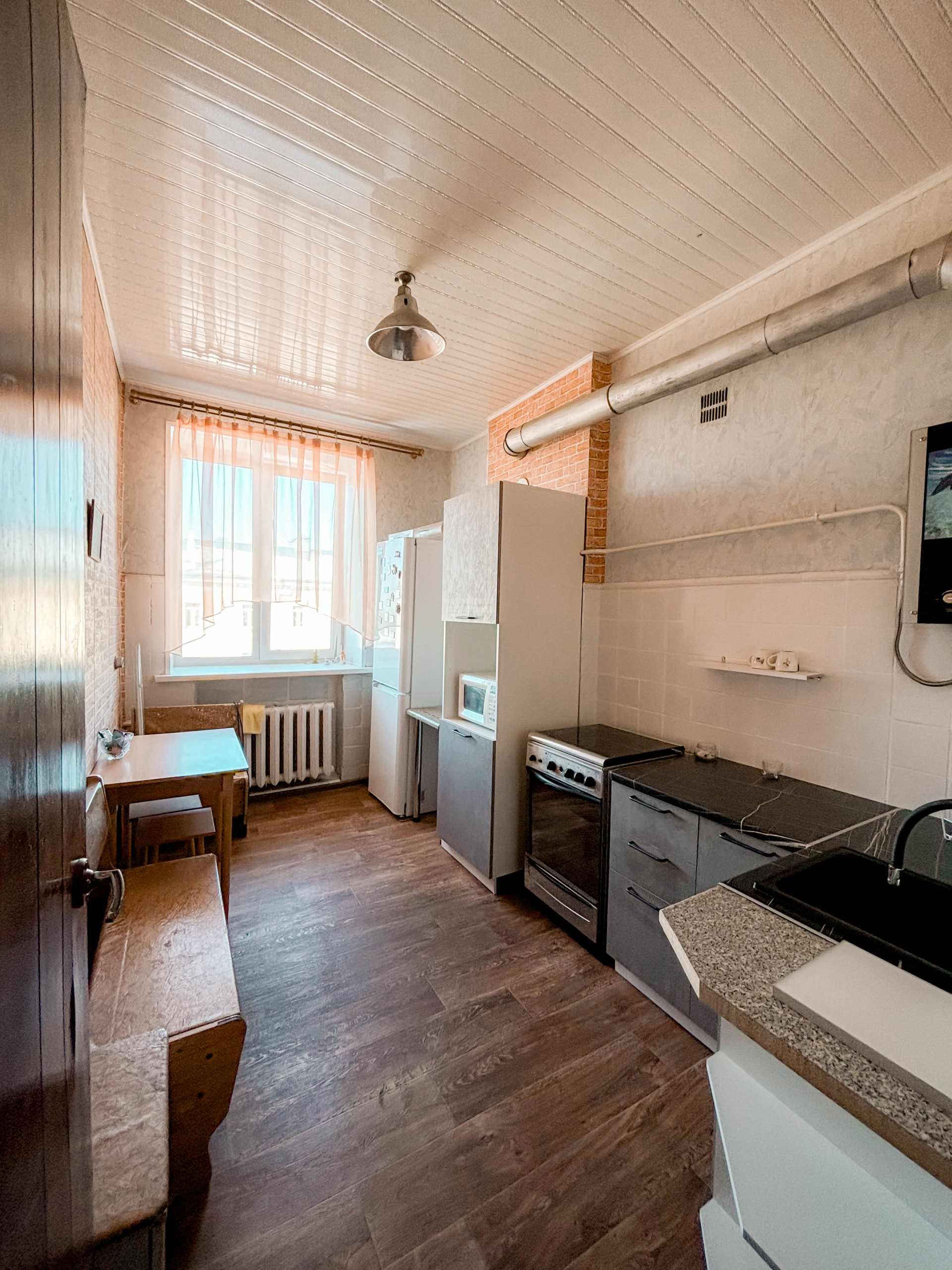 Почти всё, что вы видите на фото останется  в квартире. Вся мебель и техника в квартире остаётся по договоренности. Стеклопакет только в комнате (А) и на кухне, в других местах деревянные рамы.