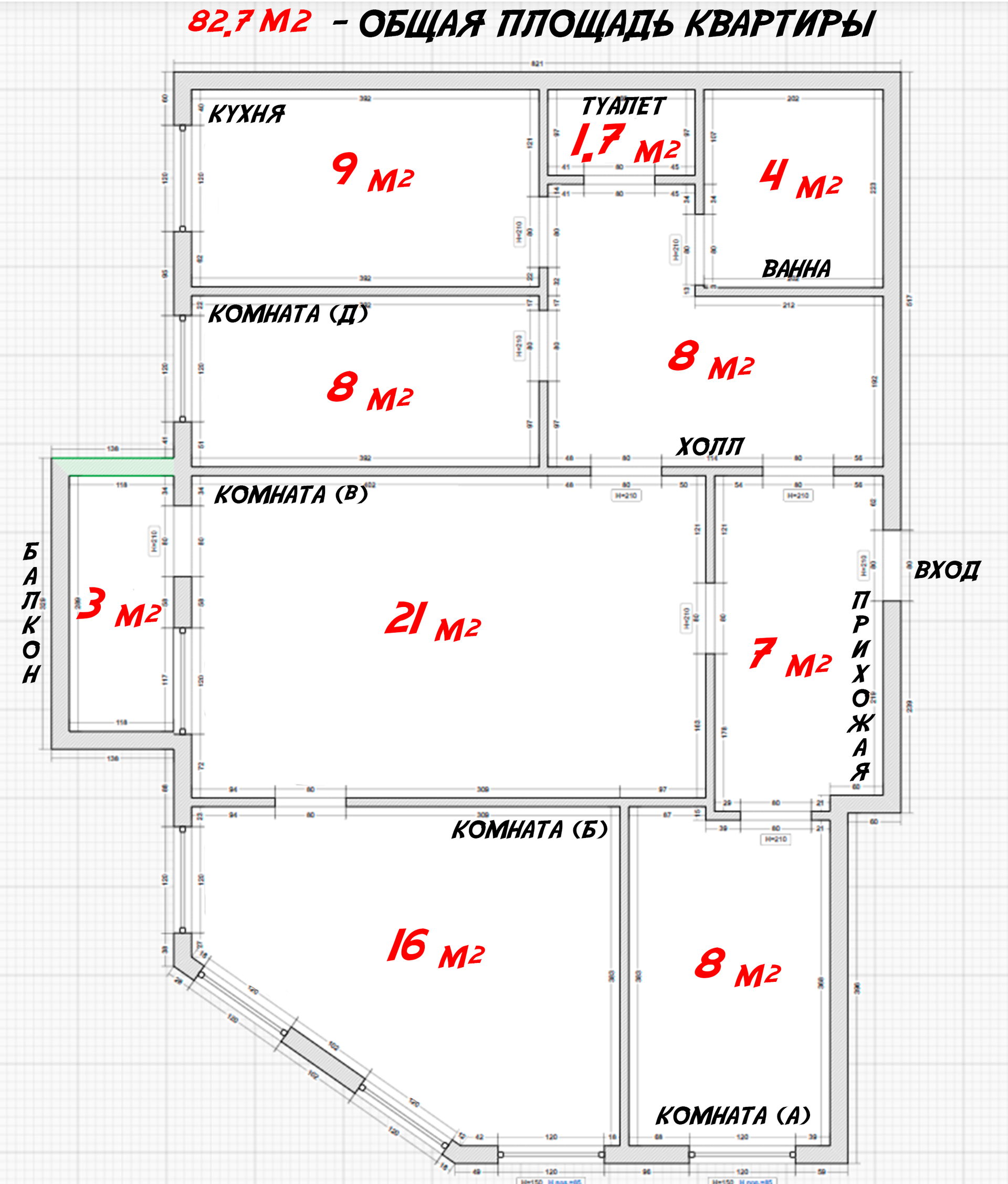 Общая площадь 82.7 м2