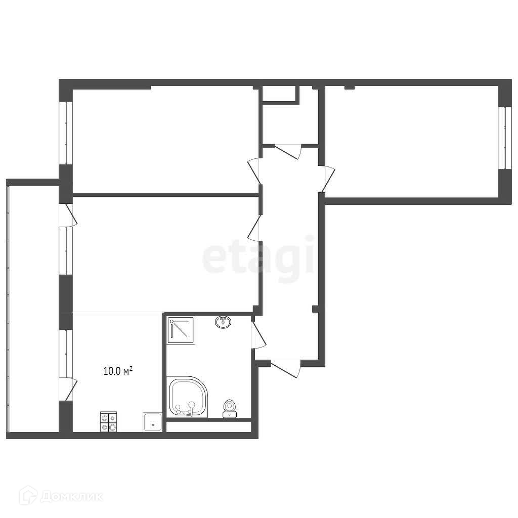 Просторная утепленная лоджия площадью 9,8 м2.
