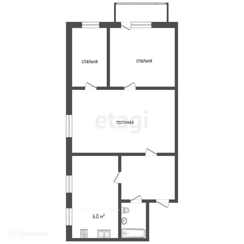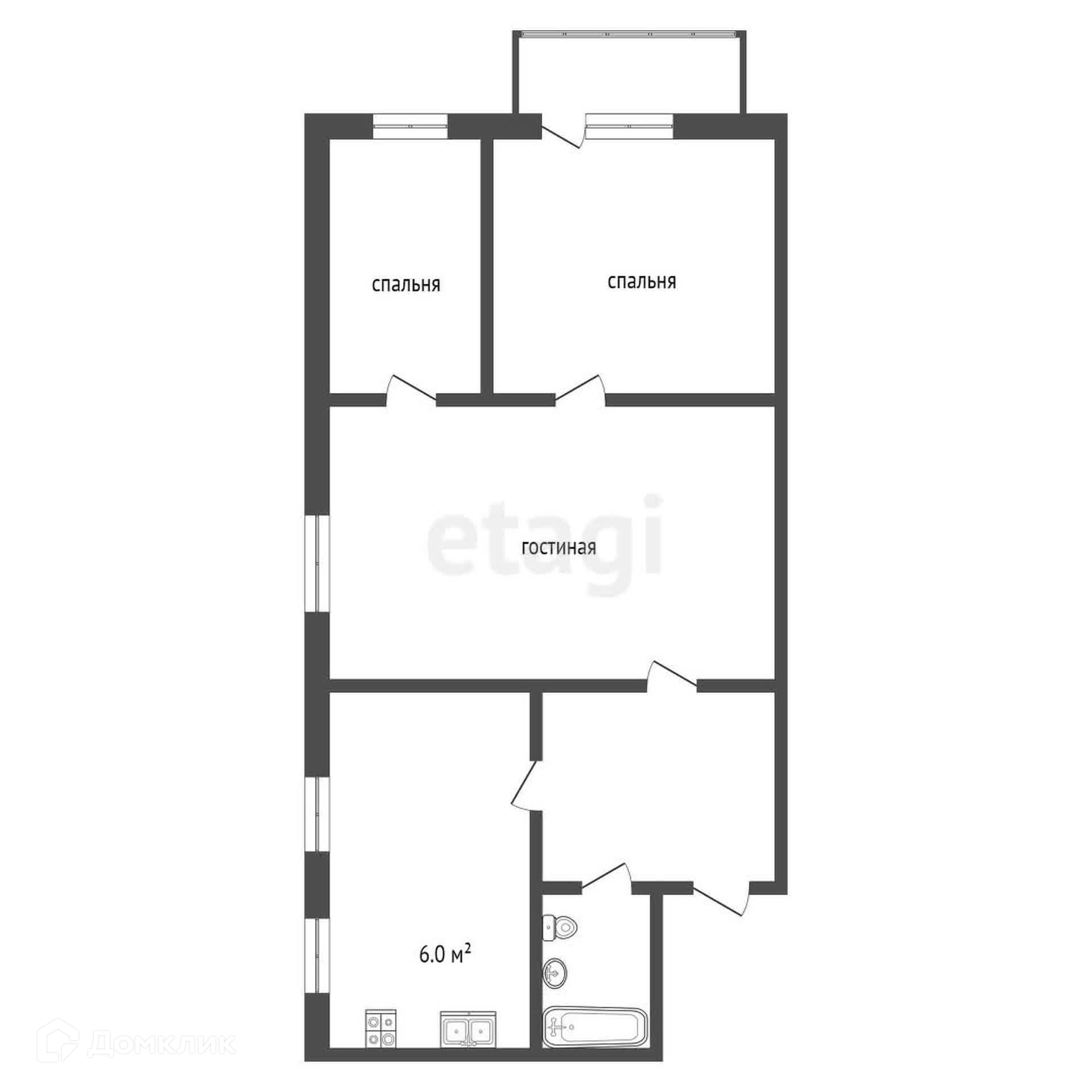 Общая площадь 60.5 м2