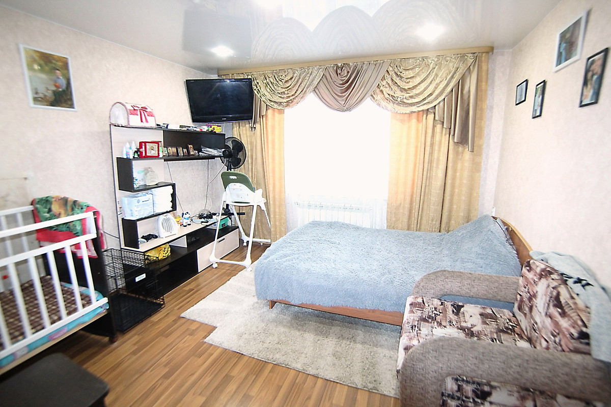 Продаётся двухкомнатная квартира в бывшем общежитии общей площадью 32 кв.м.( статус квартиры), в квартире все окна ПВХ, на полу ламинат, межкомнатные двери из натурального массива дерева, натяжной потолок, батареи отопления биметалл, отгорожена кухня, на которой установлена душевая кабина и раковина, вся кухня остаётся новым хозяевам кроме стиральной машинки и холодильника, туалет на две семьи закрывается на ключ, соседи тихие и спокойные. На первом этаже имеется большая (колясочная) под ключ, что позволяет не таскать на этаж коляски, велосипеды и др.  Квартира расположена на четвертом этаже, неугловая. Снаружи утеплённый фасад. Развитая инфраструктура, всё рядом: автобусные остановки, детский сад, школа, различные магазины, гипермаркет, парк отдыха и мн др...