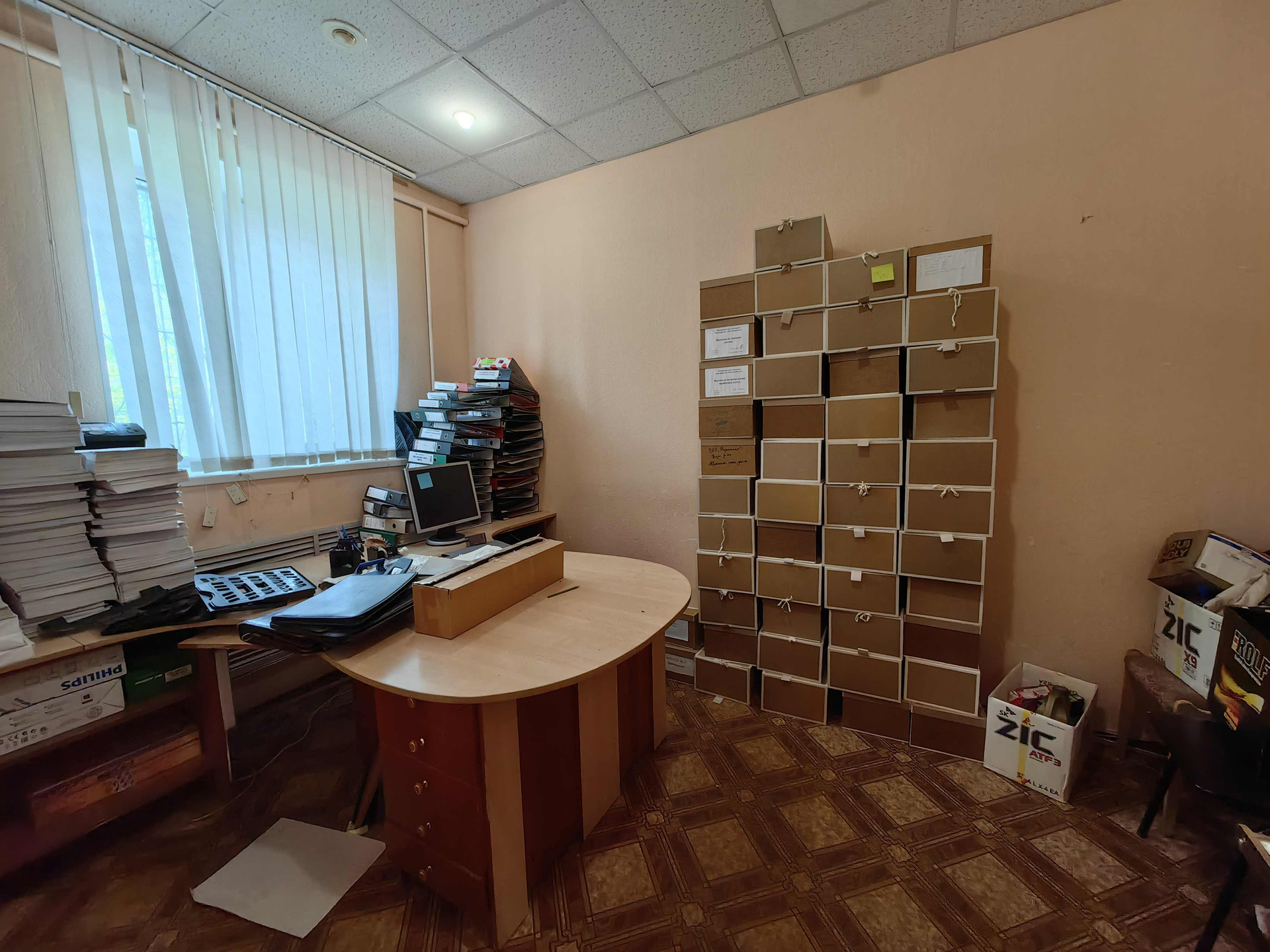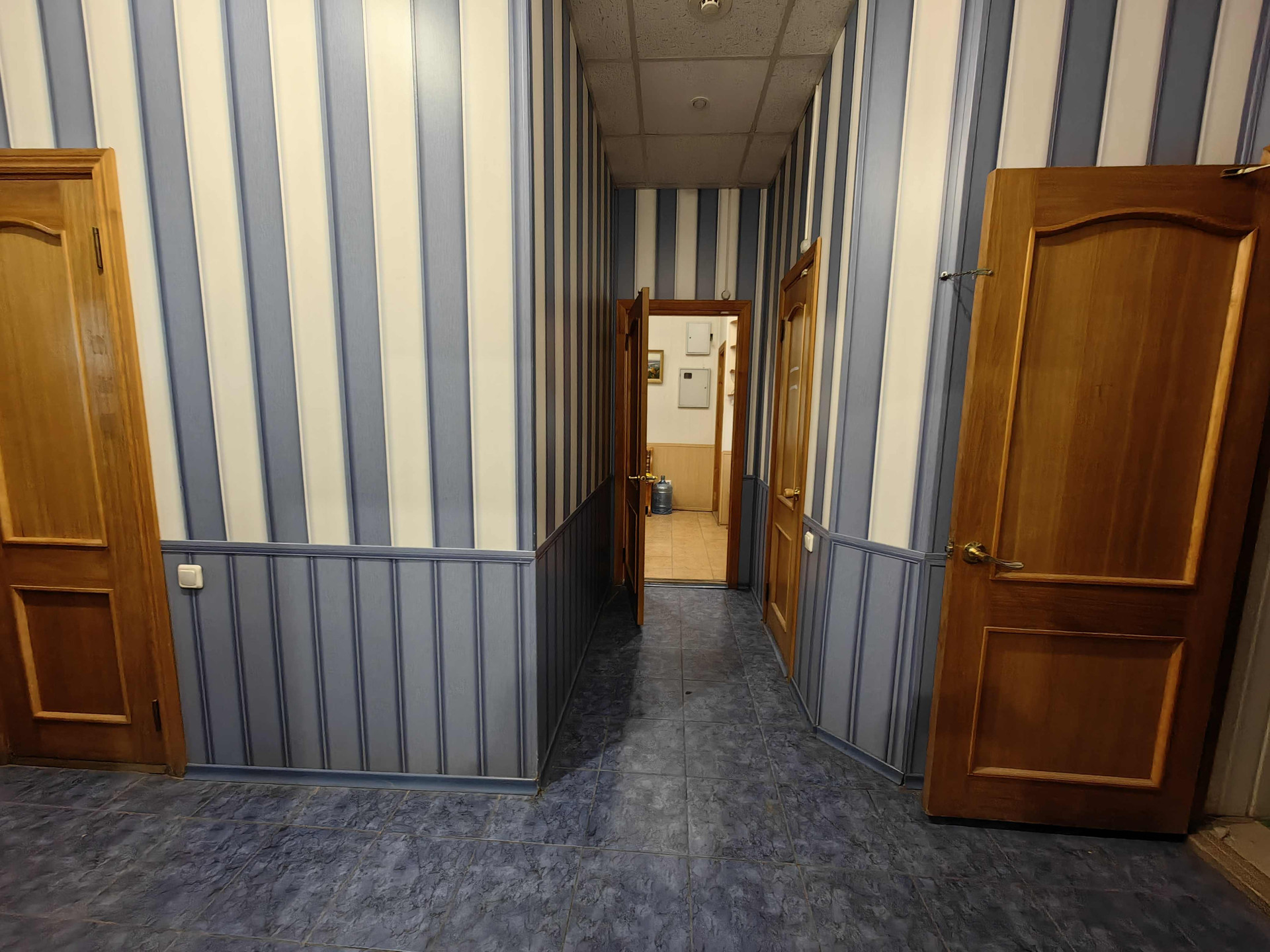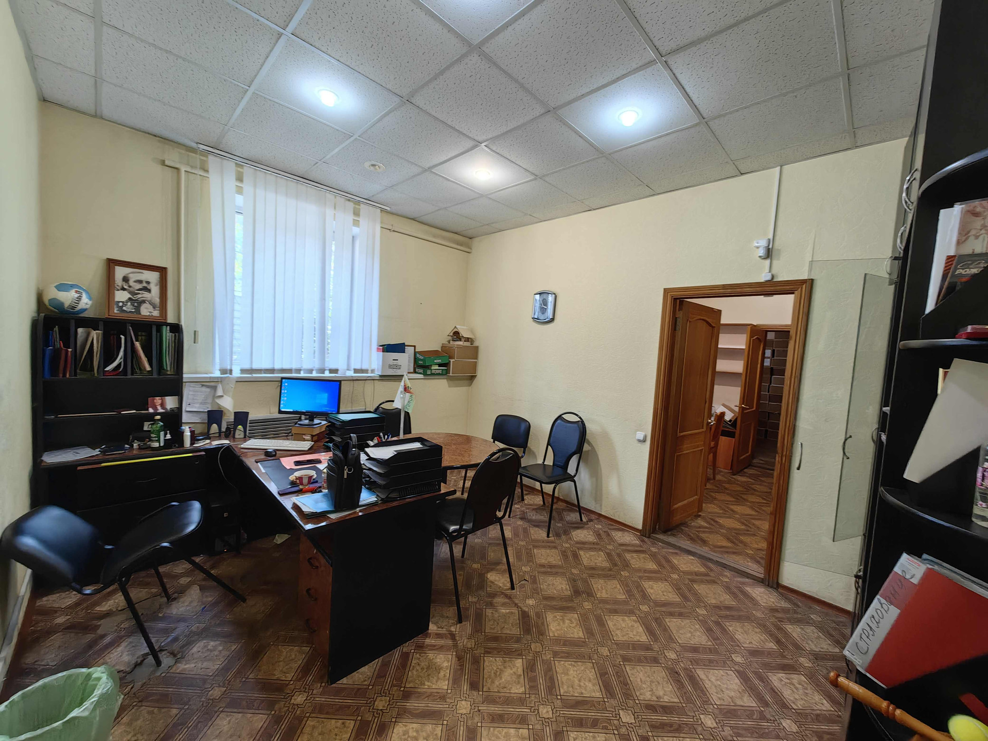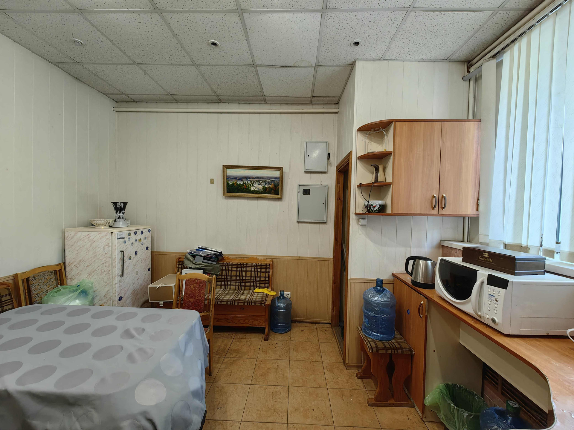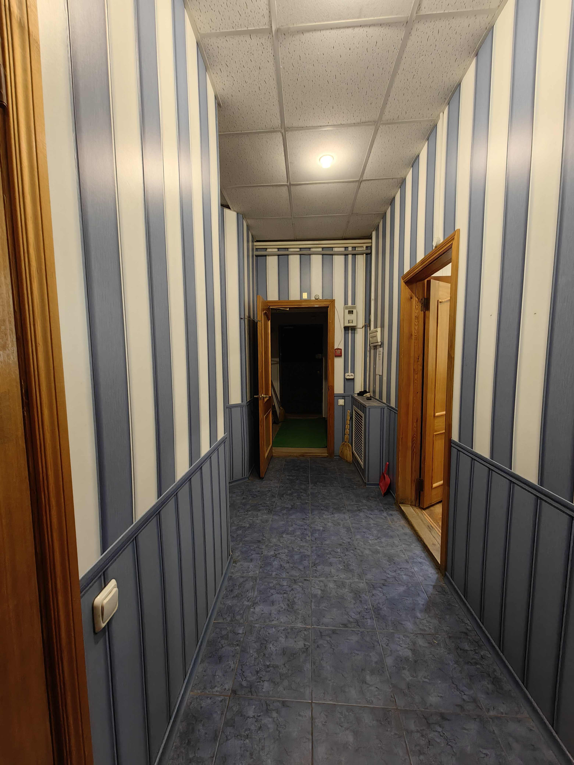 Планировка: четыре помещения -комнаты, кухня с котельной, кладовое помещение (на фото с сейфами),  туалет, тамбур и коридор.