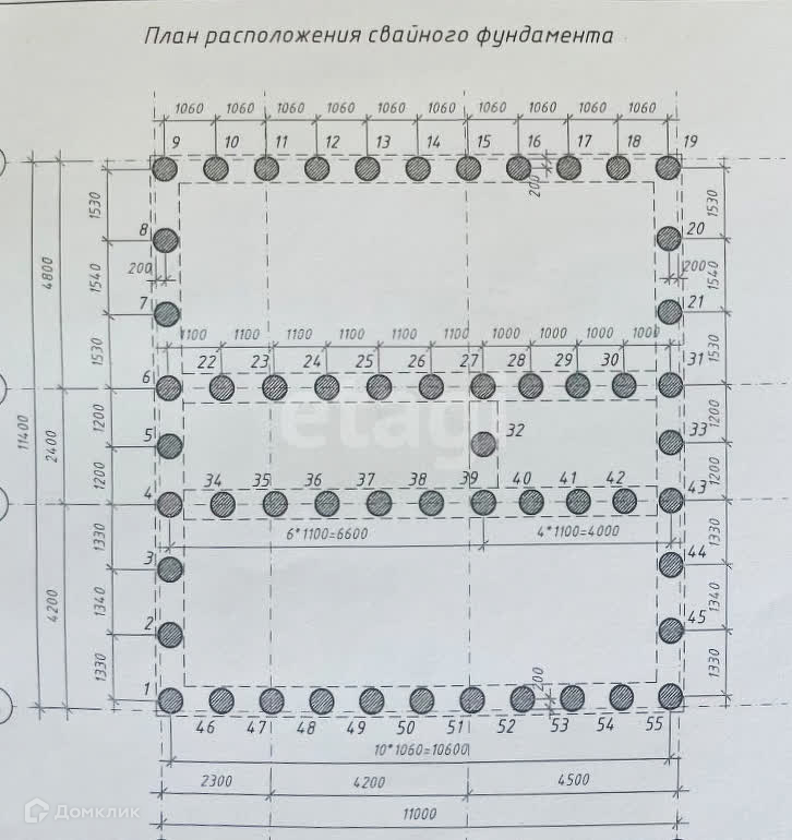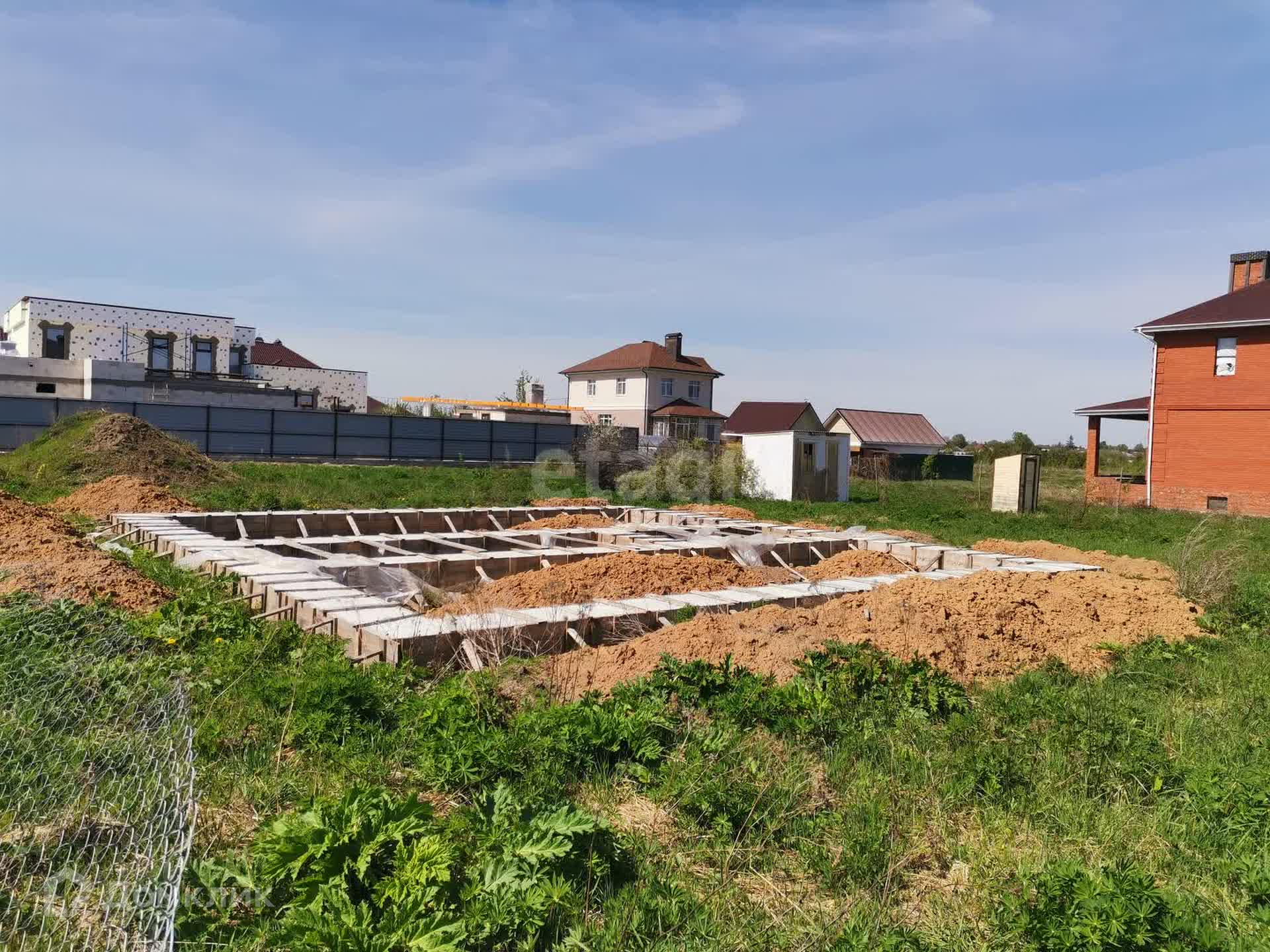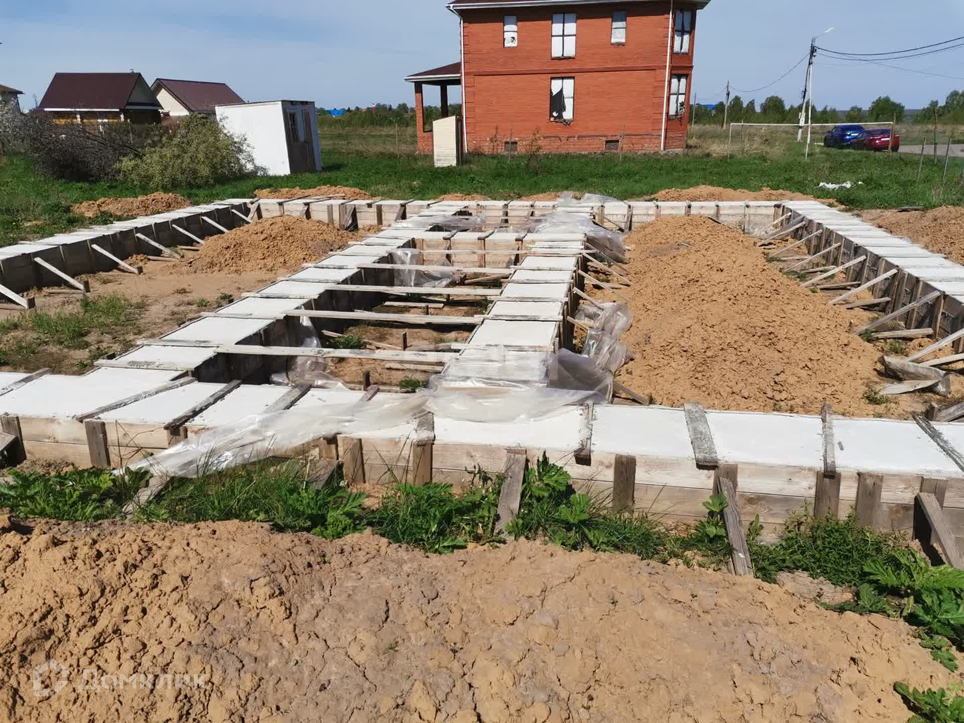 На участке в августе 2023 году возведен отличный свайно-ростверковый фундамент с утеплением. Размер фундамента 10.5 х 11.5 м. Сваи: 55 штук, диаметр свай - 500 мм.