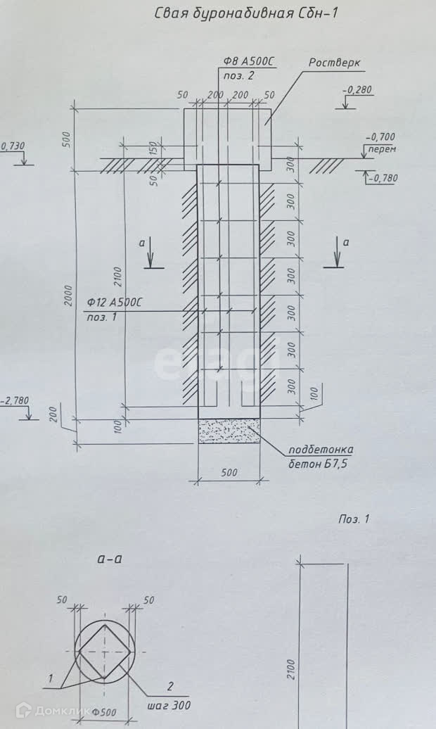 Ростверк: глубина - 500, ширина - 600.