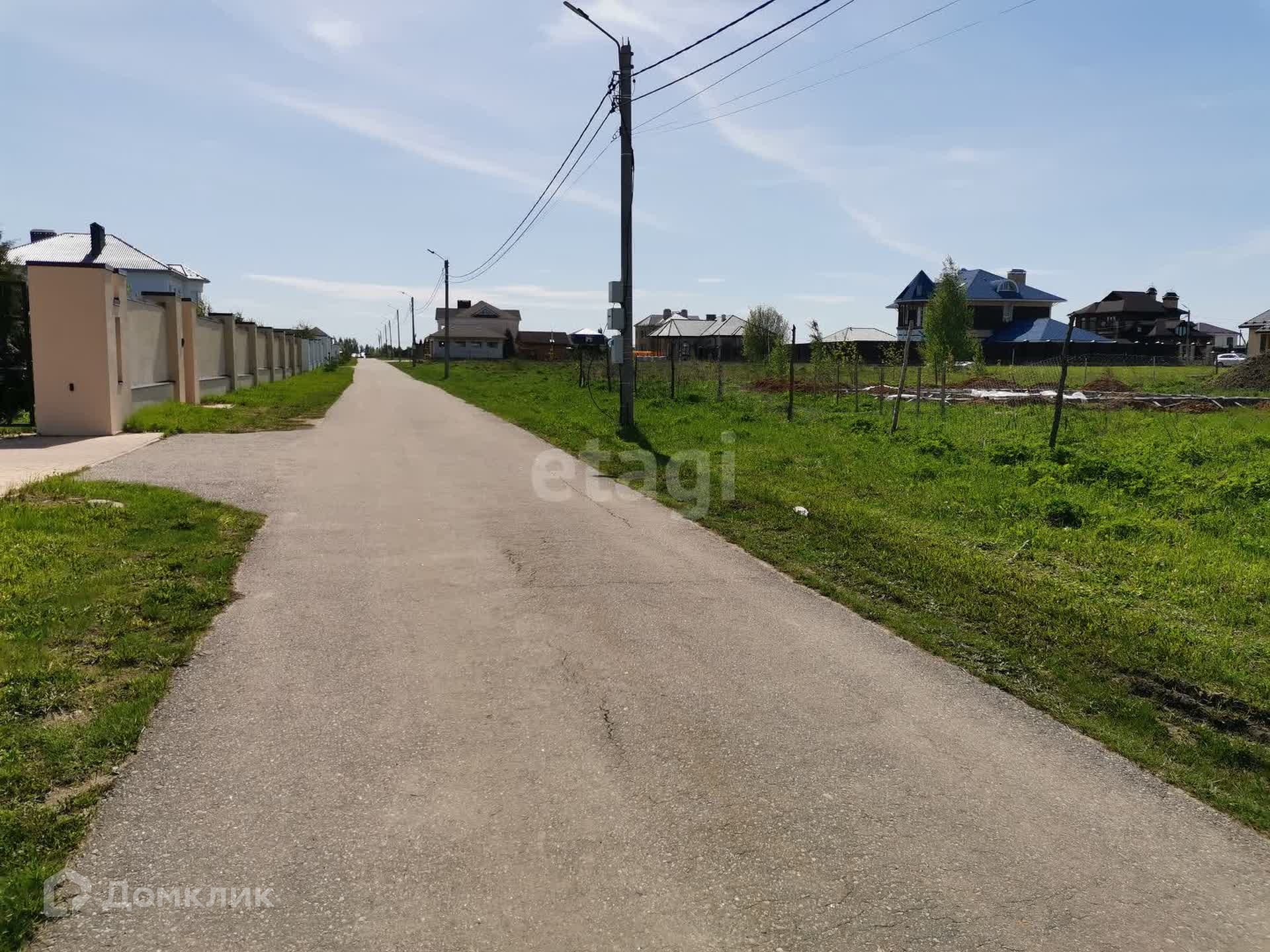 Аккуратный ровный участок прямоугольной формы без деревьев. Рядом с участком электрический столб. Газопровод и водопровод проходят по улице. Подключиться не составит труда.