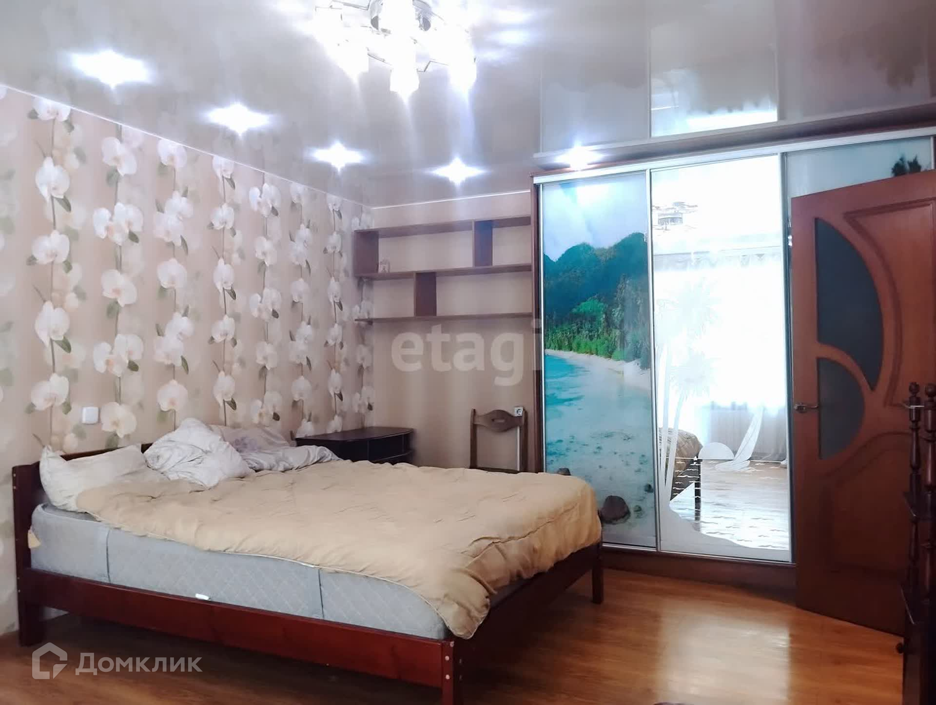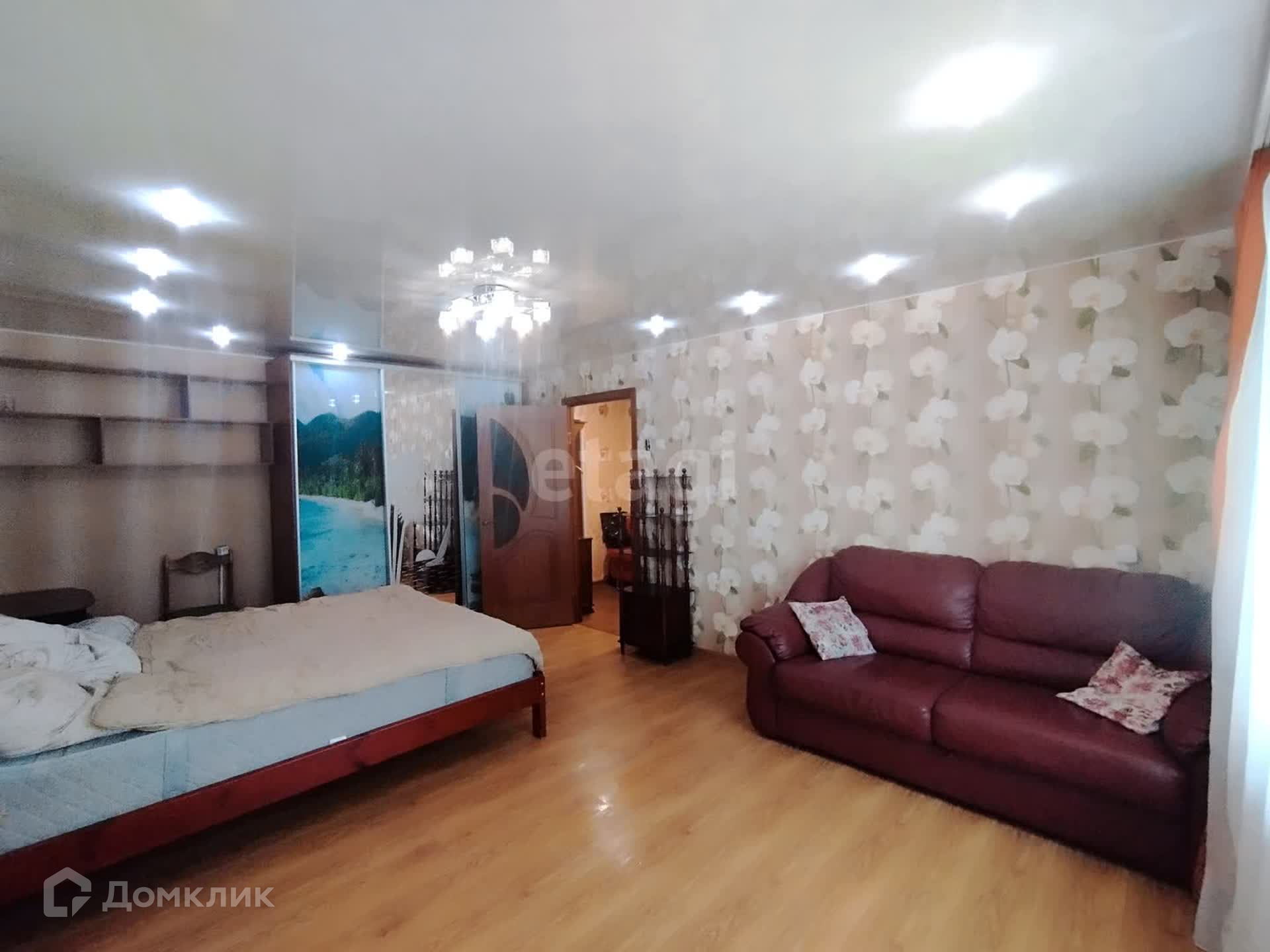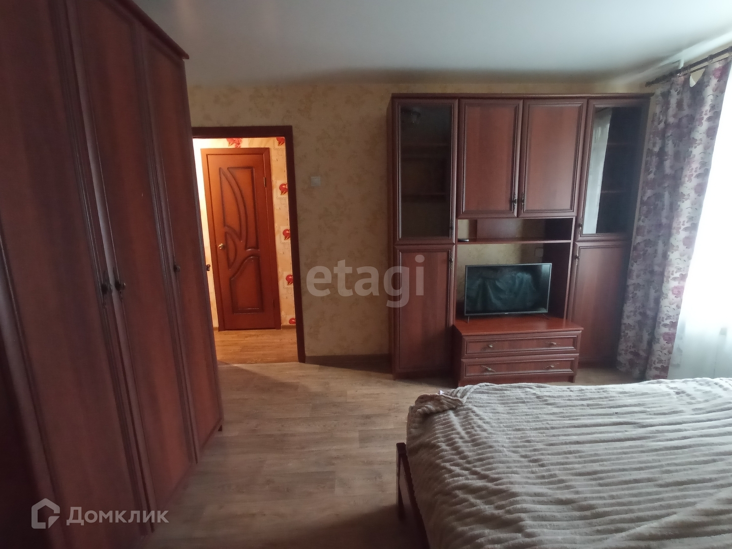 В квартире сделан косметический ремонт, комнаты не проходные. Из мебели имеется 2 двуспальные кровати, 2 шкафа, стенка, комод, диван, шкаф-купе, кухонный гарнитур, обеденная группа.