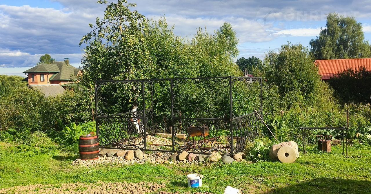 На участке имеется беседка, прекрасная кованная качель, почти закончена кованная мангальная зона.