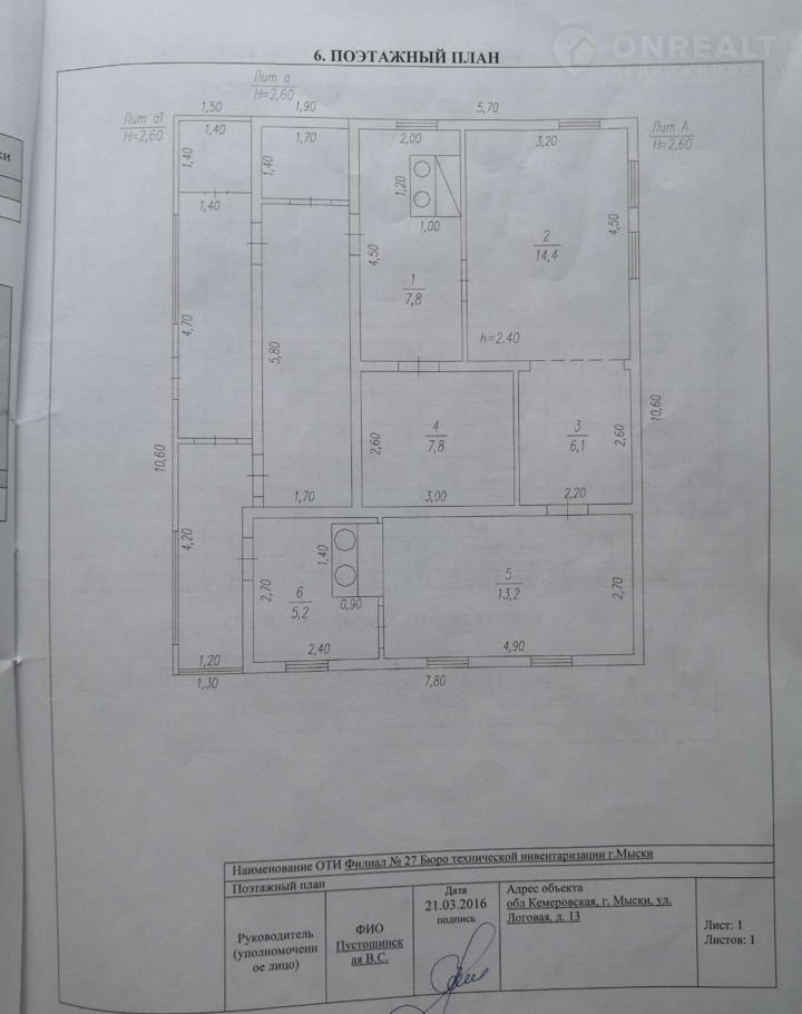 1-этажный дом, 55 м2, на продажу в Мысках, Логовая улица, 13