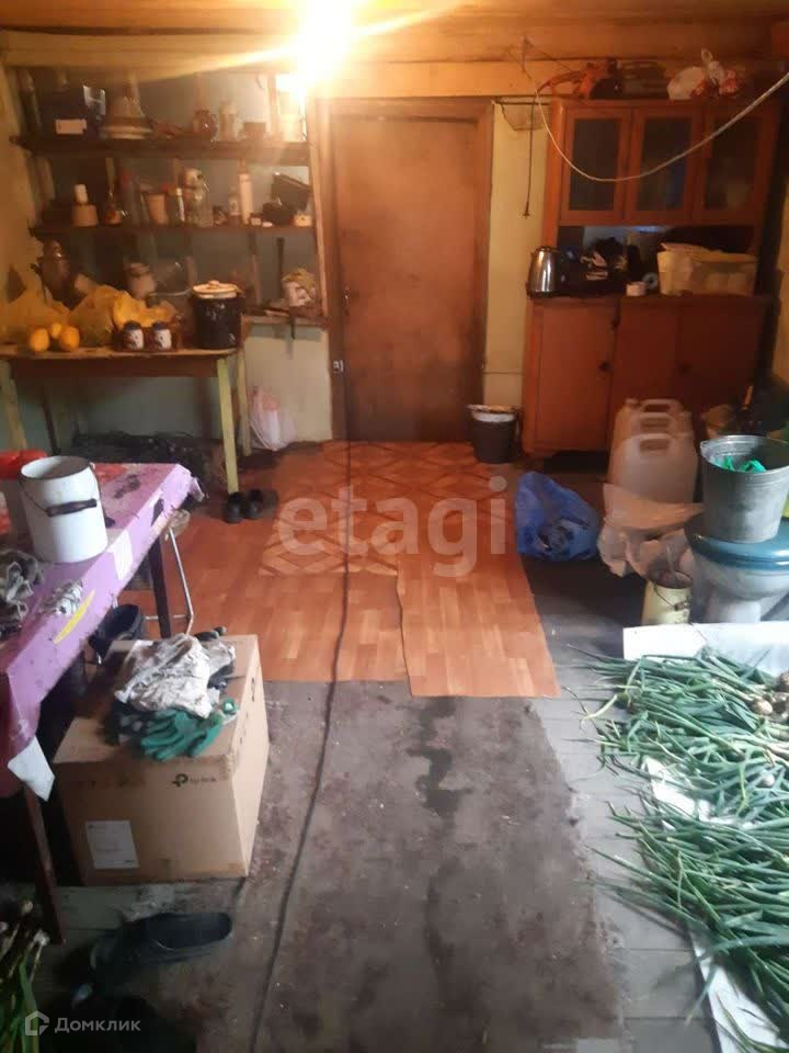Продаётся небольшой одноэтажный домик из бруса. В доме требуется небольшой косметический ремонт. На полу в комнатах постелен линолеум, в кухне на полу ДСП и покрашен. Стены выровнены и покрашены. Потолок выровнен и побелен. Все окна в доме деревянные. На участке имеется теплица, в которой растут овощи. Участок разработан и удобрен, посажены грядки с овощными культурами. На участке есть колодец, требующий ремонта. Есть новая баня, слесарная и гараж. В шаговой доступности от дома находятся остановки общественного транспорта и много магазинов.