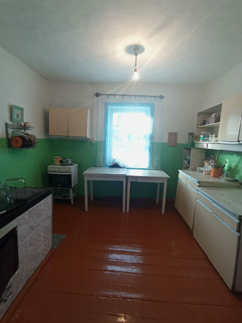 Продается 1-этажный, 3-х комнатный кирпичный дом, расположенный по адресу: г. Мыски, улица Родниковая, общей площадью 57,8 кв.м., участок 10,6 сотки в собственности. В доме установлены деревянные окна, стены и потолок побелены, пол деревянный покрашен, центральный водопровод, слив в доме, отопление паровое, два года назад была заменена вся электропроводка, установлен новый счетчик, туалет на улице. Крыша перекрыта металлопрофилем в 2018 году. Дом капитальный, сухое подполье в рocт человека, там сделаны полки для заготовок, на полу положена толстая резина eдиным куском, сухой погреб, воды в нем нет даже весной. Установлено видеонаблюдение. На участке имеется: баня, летняя кухня, сарай, углярка. Огород ухожен, плодородная почва. Из насаждений имеется: плодоносящие яблони, вишня, слива, малина, крыжовник, клубника. Документы готовы. Возможно приобретение с помощью ипотеки.