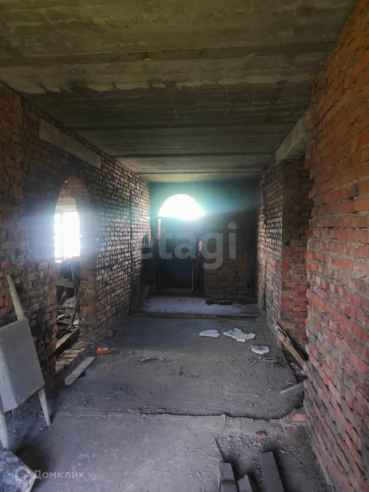 Дом возведен на сваях, построен из кирпича, черновая отделка дома