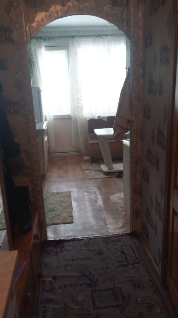 Комната в хорошем состоянии, недавно был сделан ремонт: установлено пластиковое окно, на пол постелен ДВП, на стенах обои, потолок затерт и покрашен. Комната на солнечной стороне, очень теплая и светлая. Санузел раздельный. Входная дверь металлическая, балкон не застеклен. В шаговой доступности вся инфраструктура: школа, спортзал, детская площадка, магазины, музей.